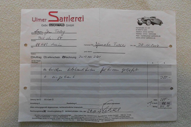 Alleine die Sattlerarbeit hat 303.-€ gekostet. Da ist der Wert der eigentlichen Sitzbänke noch gar nicht dabei.