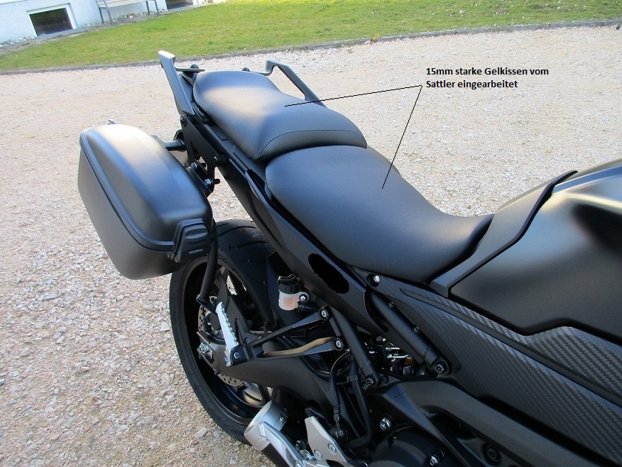 Die Sitzbank (Fahrer.- und Beifahrersitzbank) wurde von einem spezialisierten Sattler mit Geleinlagen versehen. Der Sitzkomfort ist dadurch erheblich besser geworden. Besser sogar als die Komfortsitzbank des Hauses Yamaha.