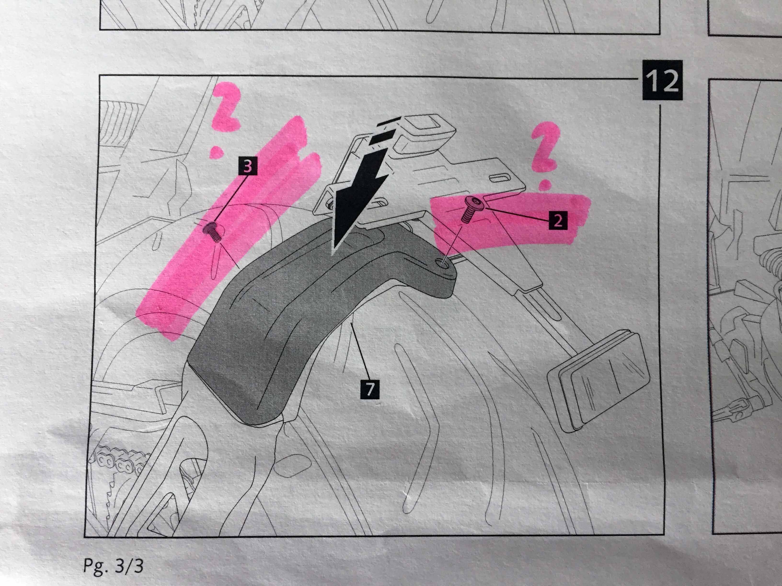 Edit: Ich sehe gerade die Mutter für die Befestigung der Plastikabdeckung (Schraube 2) ist auf deinem "Auspackbild" an der richtigen Stelle. Die Aufnahmehalterung für die Schraube 1 trägt in der Anbauanleitung die Nummer 6.