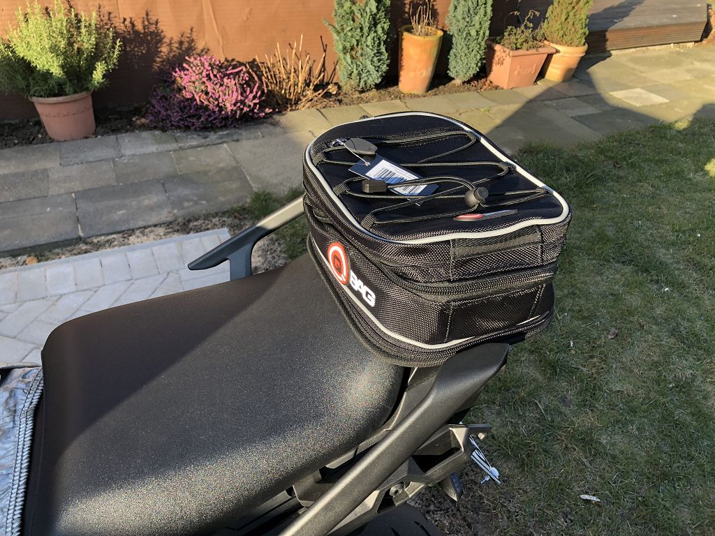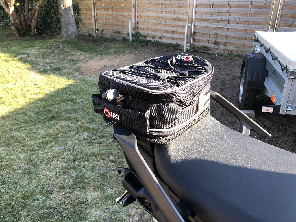So, nachdem die Platte montiert war, ging es um eine kleine Gepäcklösung für Helmschloss, Verbandzeug, etc. Kleinkram halt, der immer dabei sein sollte.
