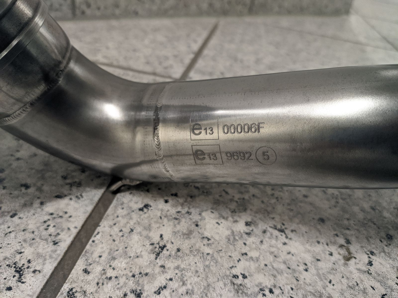 Wichtig ist vor allem die E-Nummer auf dem Sammler, da es diesen auch als Racing Version ohne Nummer/Kat gibt. Nur die E-Nummer auf dem Dämpfer reicht dann nicht.