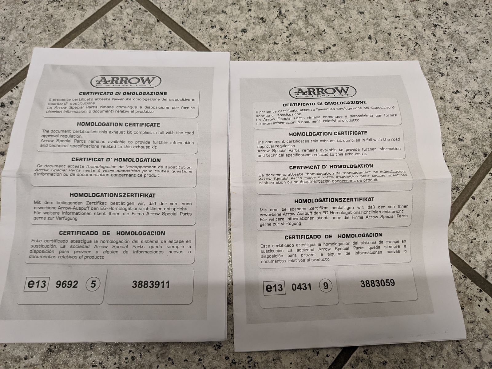 Ich hab meine E4 Arrow zwar nicht mehr, aber siehe die Bilder im Anhang zu den E-Nummern.