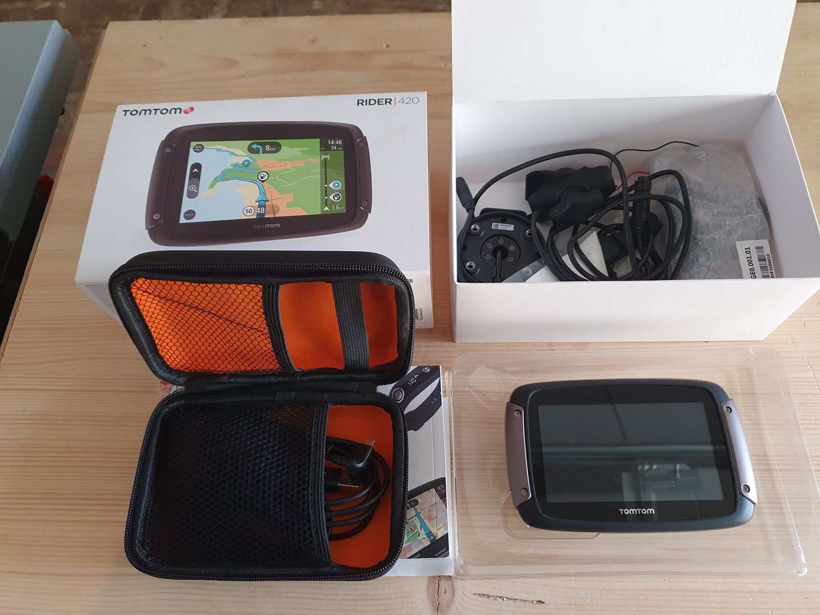 Ich biete mein Neuwertiges Tom Tom Rider 420 in OVP mit Befestigungsmaterial und Transporttasche zum Verkauf an . Die genauen Daten findet ihr auf der Hp von TomTom .