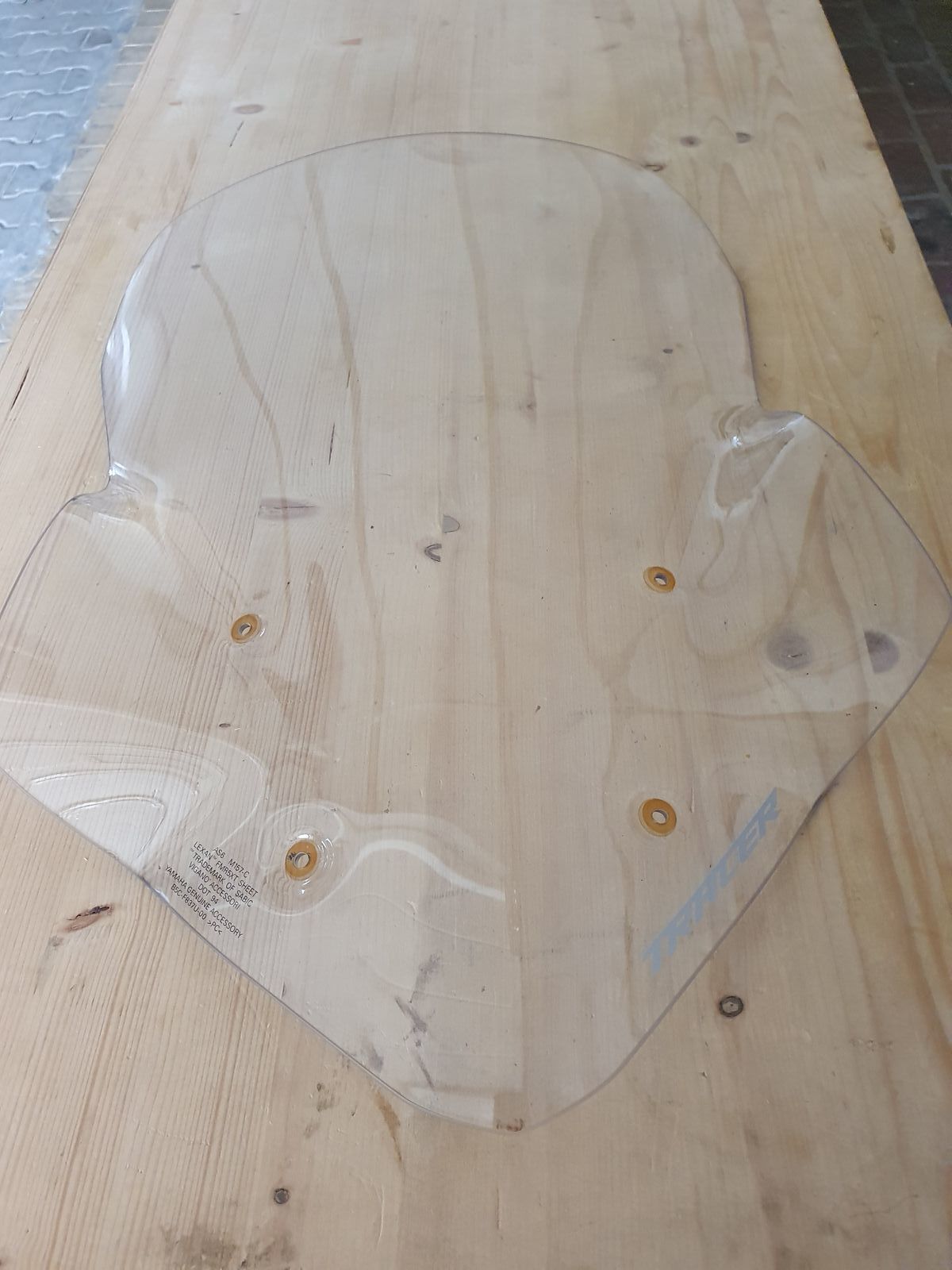 Verkaufe ein original Yamaha Hohes Windschild für eine Tracer 900 mit Kratzern . Die Kratzer bekomme ich leider nicht Fotografiert sie stören beim Fahren nicht .