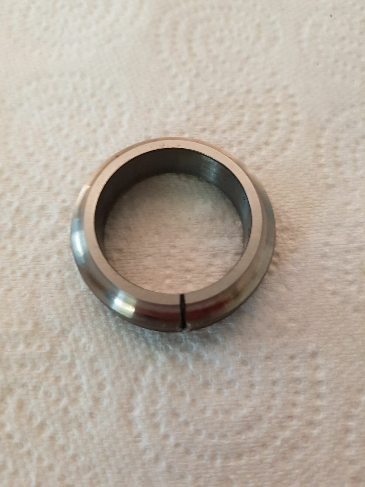 Die Schwierigste Lagerschale zum Ausbauen oder runter zu bekommen ist die auf dem Steuerrohr. Erstens kommt man kaum drunter und zweitens ist das Teil schlecht zum Einspannen im Schraubstock. Zuerst hatte ich es mit Heiß machen versucht. Leider keinen Erfolg. Dann mit einem Dremel und einer kleinen Trennscheibe, die Lagerschale soweit es geht einschneiden. Aufpassen das man nichts anders mit Erwischt. Ein Beherzter Schlag mit dem Hammer und Meisel und die Lagerschale bricht auseinander. Puuh erstmal Durchatmen.