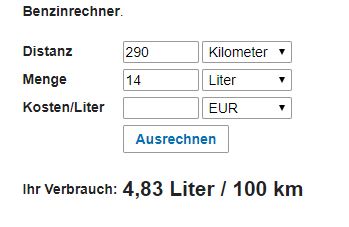 Aktuell sind es bei mir 7,2 Liter. Für die abgerufene Leistung geht das für mich in Ordnung.