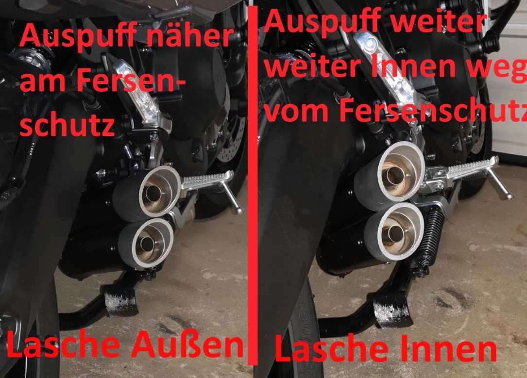 Ich hatte auch erst die Lasche Außen, mit dem oben genannten Ergebniss. Es sah beinahe so aus wie auf den Bildern weiter oben bei der Montabe des nicht passenden X55. Ich hab den Topf tierisch hochbiegen müssen. Bei der Montage hinter dem Halten brauchte ich nur einen Finger um den Topf leicht zu fixieren während ich die originale Schraube durchsteckte. alles ohne jeglichen Kraftaufwand. Das Loch in der Lasche lag nicht einen Millimeter neben dem Loch im Halter. Genial genau gefertigt!