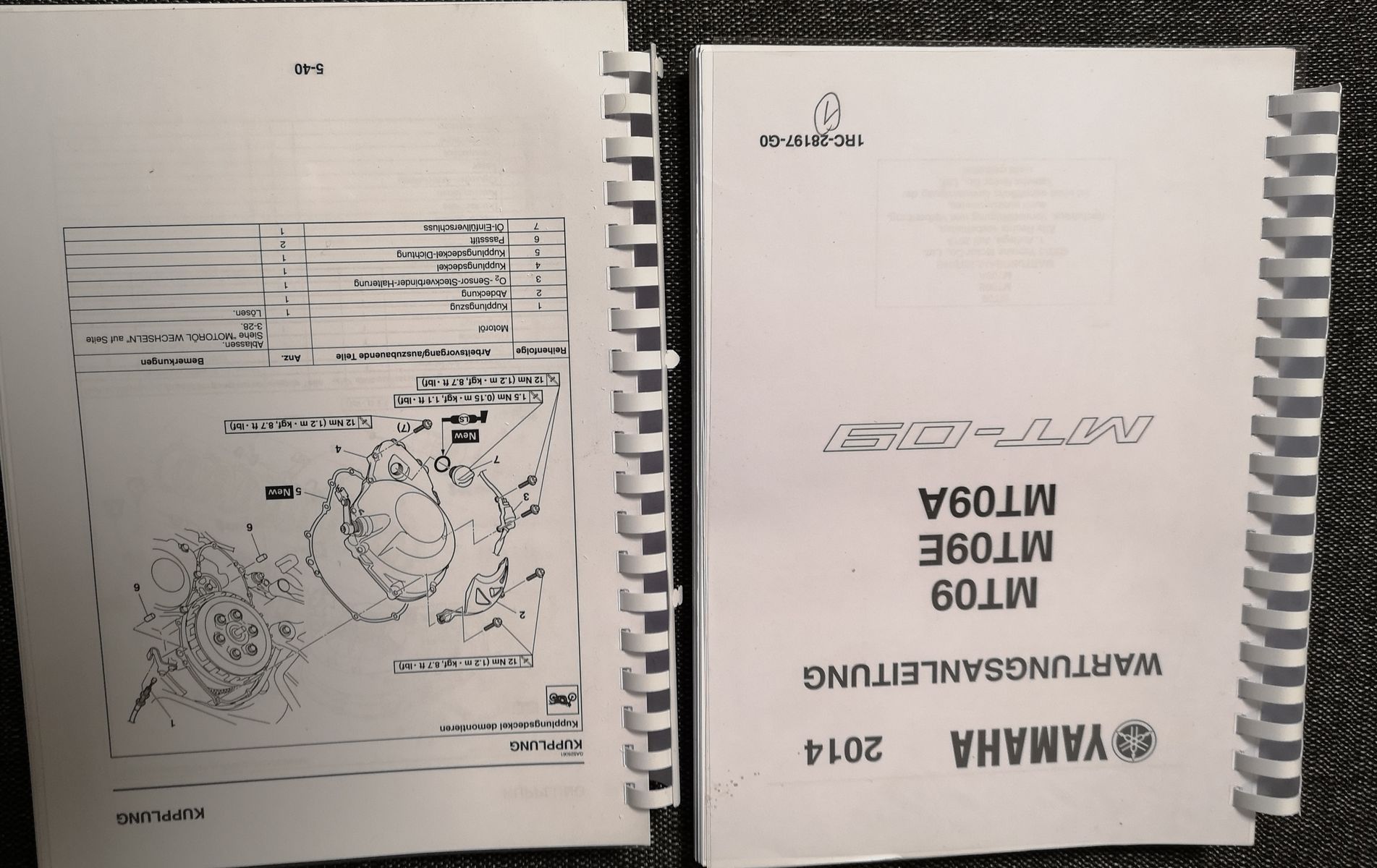 Ich biete ein ausgedrucktes Werkstatthandbuch für die MT09 inkl. Schaltplan.