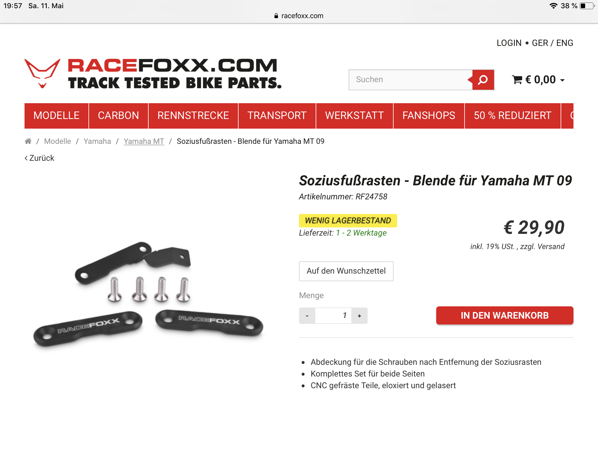 1. Fussrasten setzen auf ( Maßnahme Schleifnippel abmontiert)