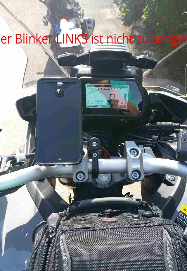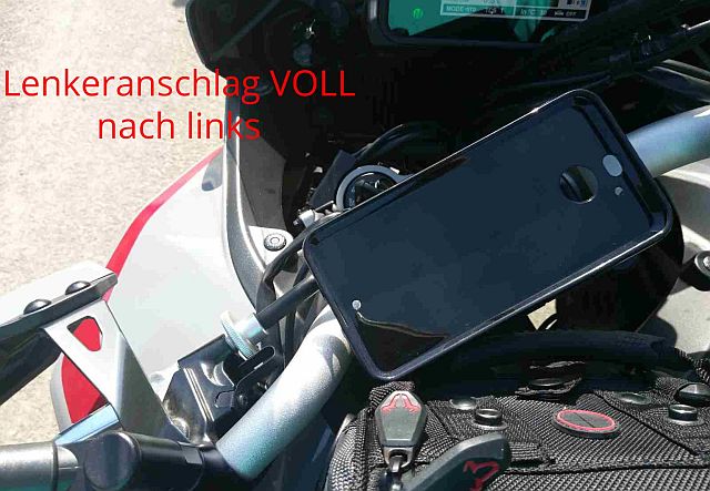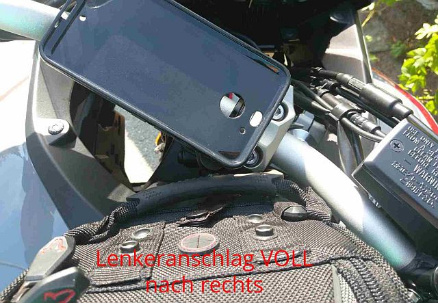 Das Handy (HTC 10 Evo) liegt dann Quer oder links am Lenker.