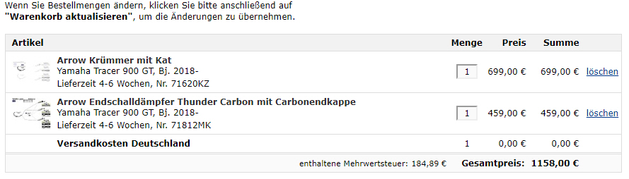 Der Händler, der bei Arrow auf der Seite in D ist hat leider keinen für die Tracer 900 GT RN57.