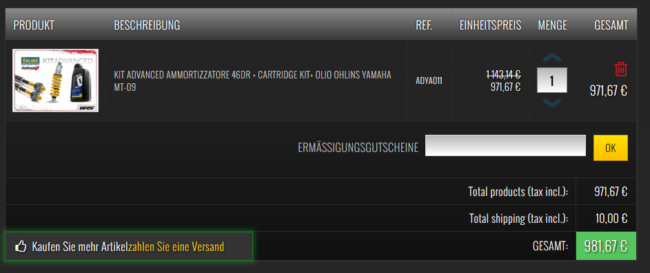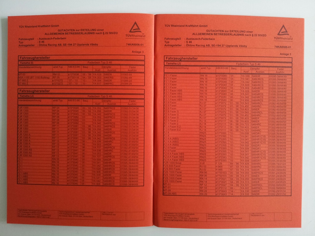 Ich würde dir aber empfehlen, das Federbein hinten direkt mit zu tauschen, Öhlins im Set aus Italien unter 1000 Euro