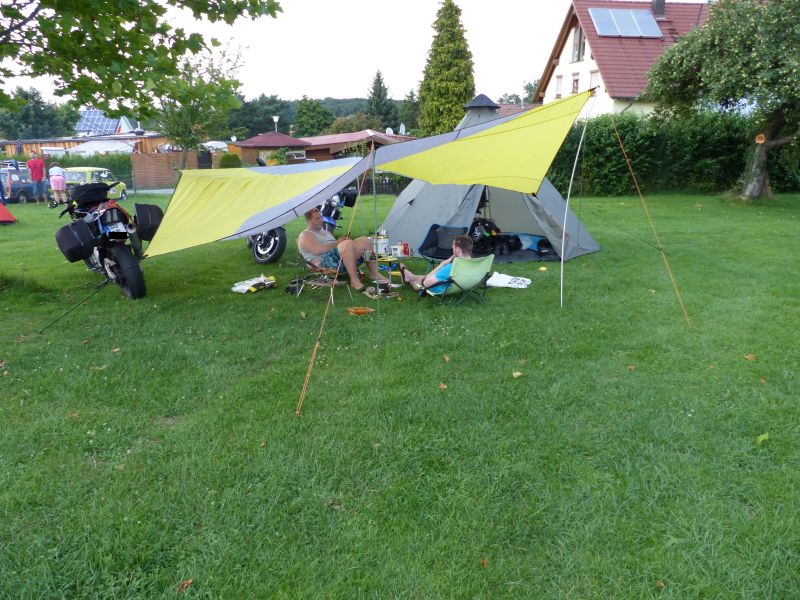 Bis auf zwei Nächte in einer Pension (Garni Crepaz in Wolkenstein, Danke für den Tip,Thomas!) haben wir die zwei Wochen im Zelt übernachtet. Wir hatten auch alles dabei was man so braucht, von Hocker über einen Tisch bis hin zum Grill und Bierfass, war alles dabei