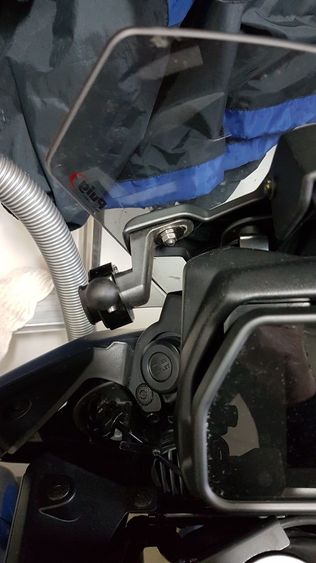 Ich den Crap bewusst erst einmal über die 12 V Steckdose versorgt, damit ich die Halterung bequem am Kugelgelenk abnehmen und für meine Tuono nutzen kann.