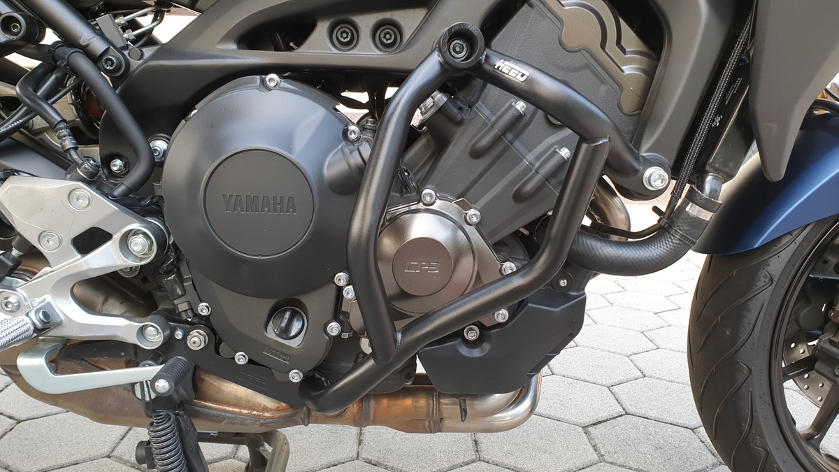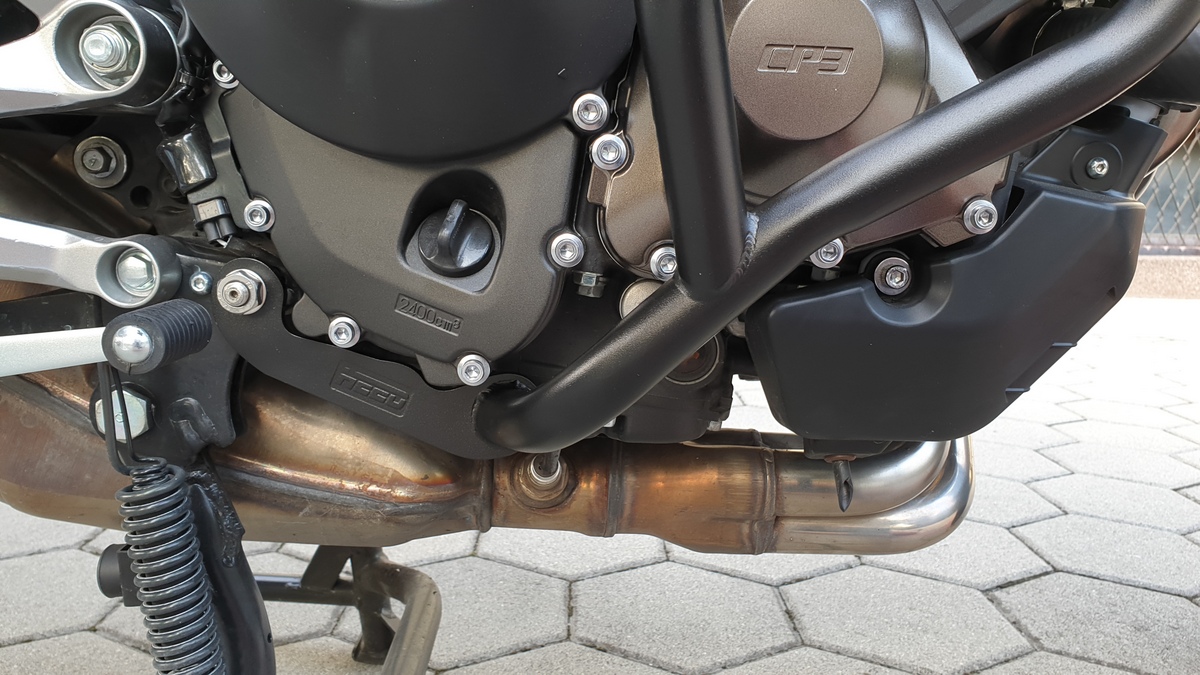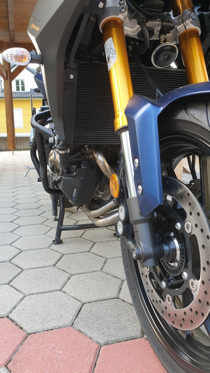 Während der Montage stand die Tracer am Hauptständer, kein Problem damit. Alle Schrauben angezogen - wie erwähnt - mit 45Nm.