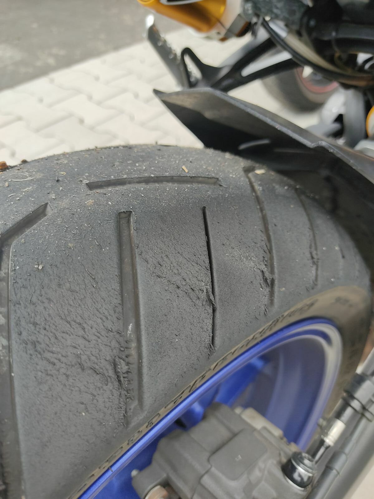 Hatte letzten Samstag in einer Linkskurve Schleifgeräusche und habe mir gerade mal am Moped die Seite angesehen. Da ich bei Schleifgeräuschen immer etwas nervös werde, kommt der Bugspoiler wieder runter.