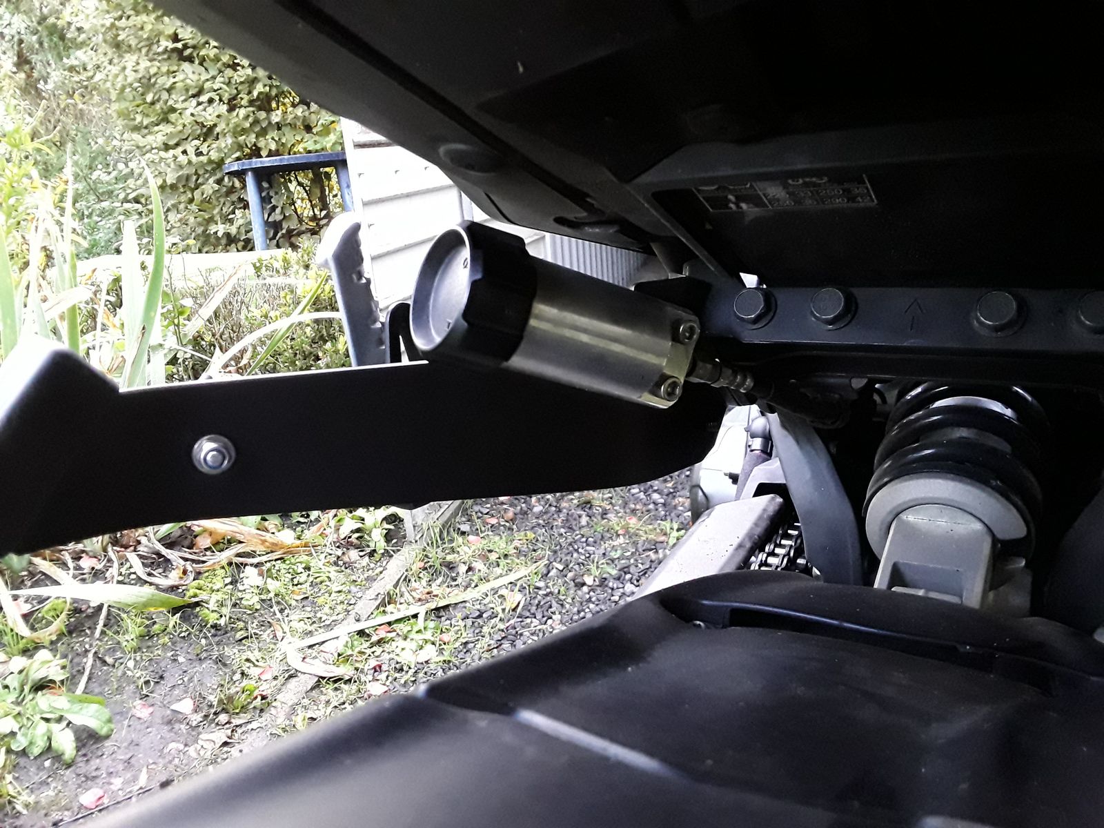 Mit Sozia und Gepäck wird es unten zur Schwinge sehr eng! Also unbedingt die Federvorspannung richtig auf die Beladung abstimmen.