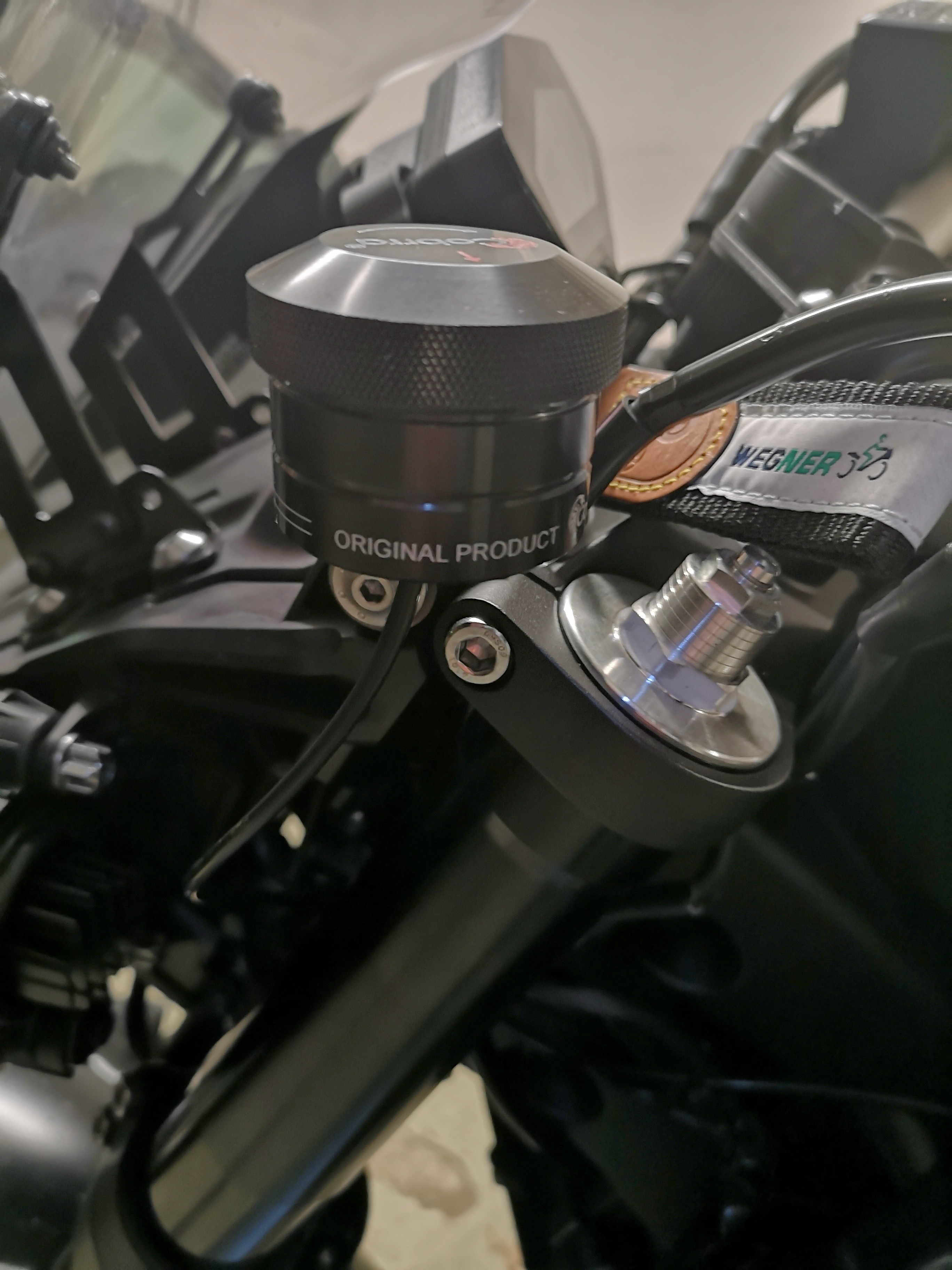 an der Bremsleitung quer unter die Sitzbank, rüber zur linken Seite unter dem Tank dann