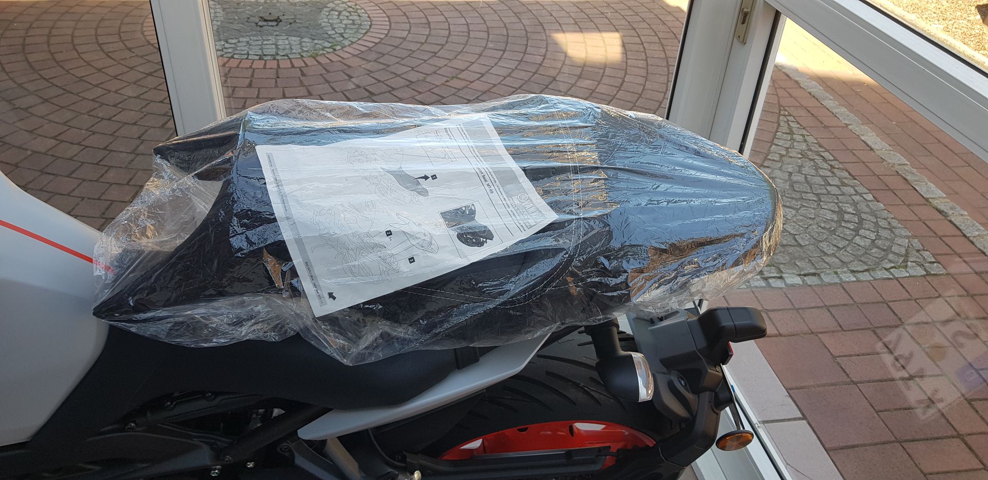 Ich hatte die Bank nur kurz montiert und bin nach einer sehr, sehr kurzen Fahrt umgekehrt und habe wieder die einfache Bank montiert. Gefiel mir einfach nicht. Die Bank ist dementsprechend absolut neuwertig und ohne Gebrauchsspuren. Weil sie in der originalen Tüte gelagert wird, ist nicht mal ein Stäubchen auf dem Leder ![]()