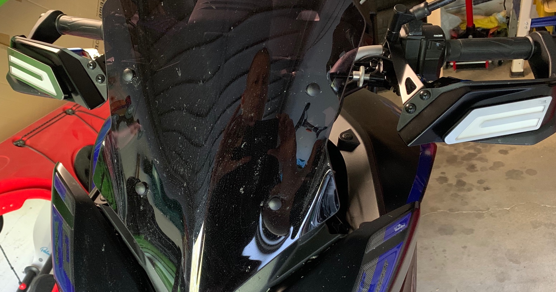 Neben der suboptimalen Optik kam eine sehr suboptimale Passform hinzu - die Teile sind komplett gerade und lassen sich daher auch mit Unterlegscheiben etc. nicht wirklich gut an die gebogenen Protektoren anpassen, zumindest nicht ohne das diese dann nicht mehr bündig abschließen.
