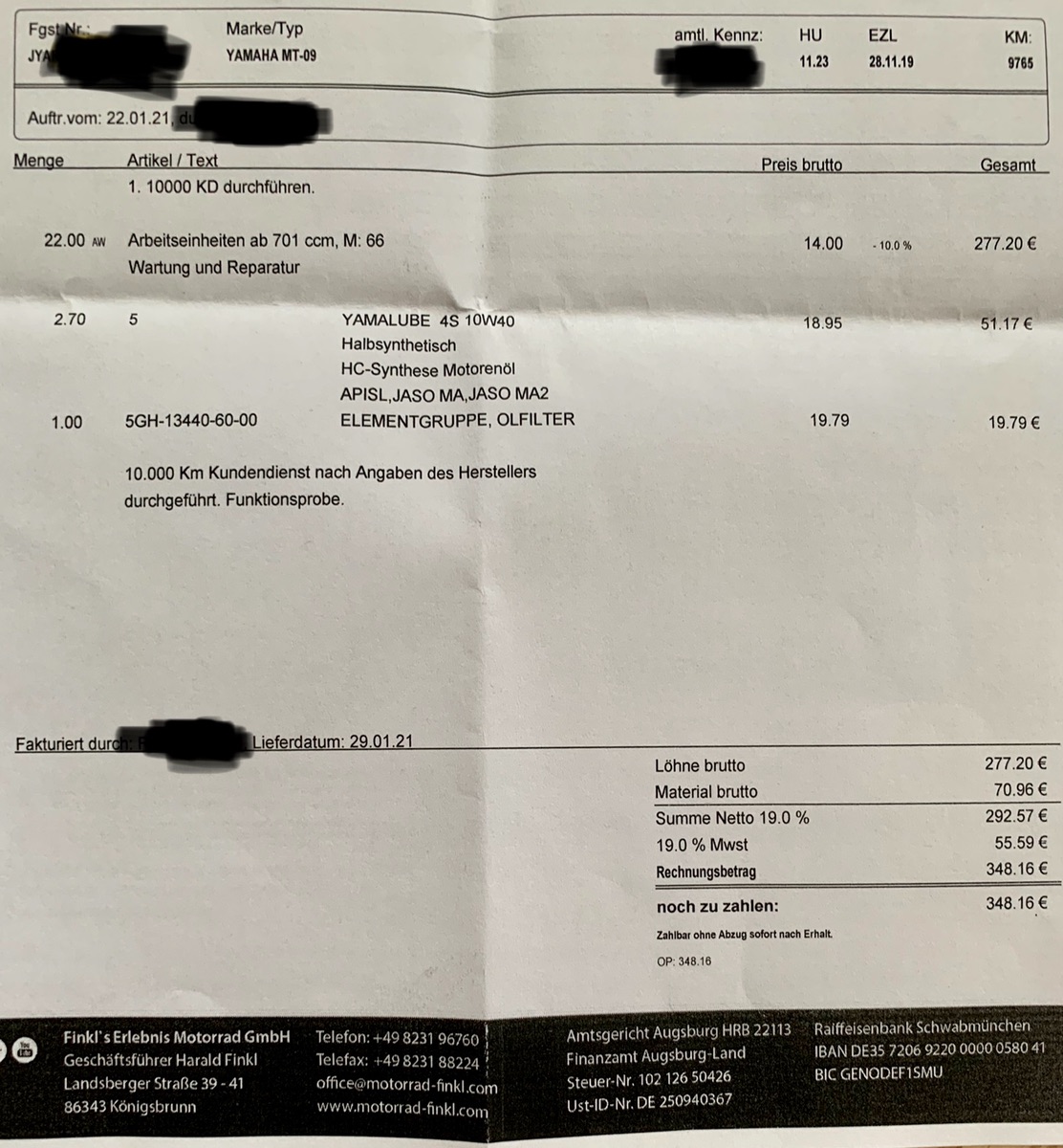 Inspektion bei 10.000 km Rickson 30. Januar 2021 Moin moin,ich hab mein Baby gestern nach der 10000er abgeholt. Yamaha Königsbrunn.Da klappern schon die Augen!!;)