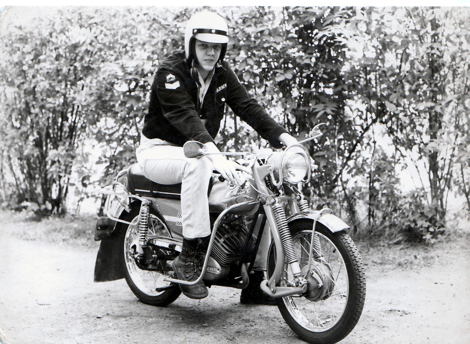 Heinkel Roller, keine Fahrstunde, am Prüfungstag musste ich das Teil anschieben, eine Acht fahren, dann hatte ich Klasse 1, das war 1972