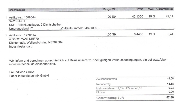 Wie man auf der Bildtafel sehen kann, wussten die schon das man das Lager (8) und den Simmering (7) erneuern soll.