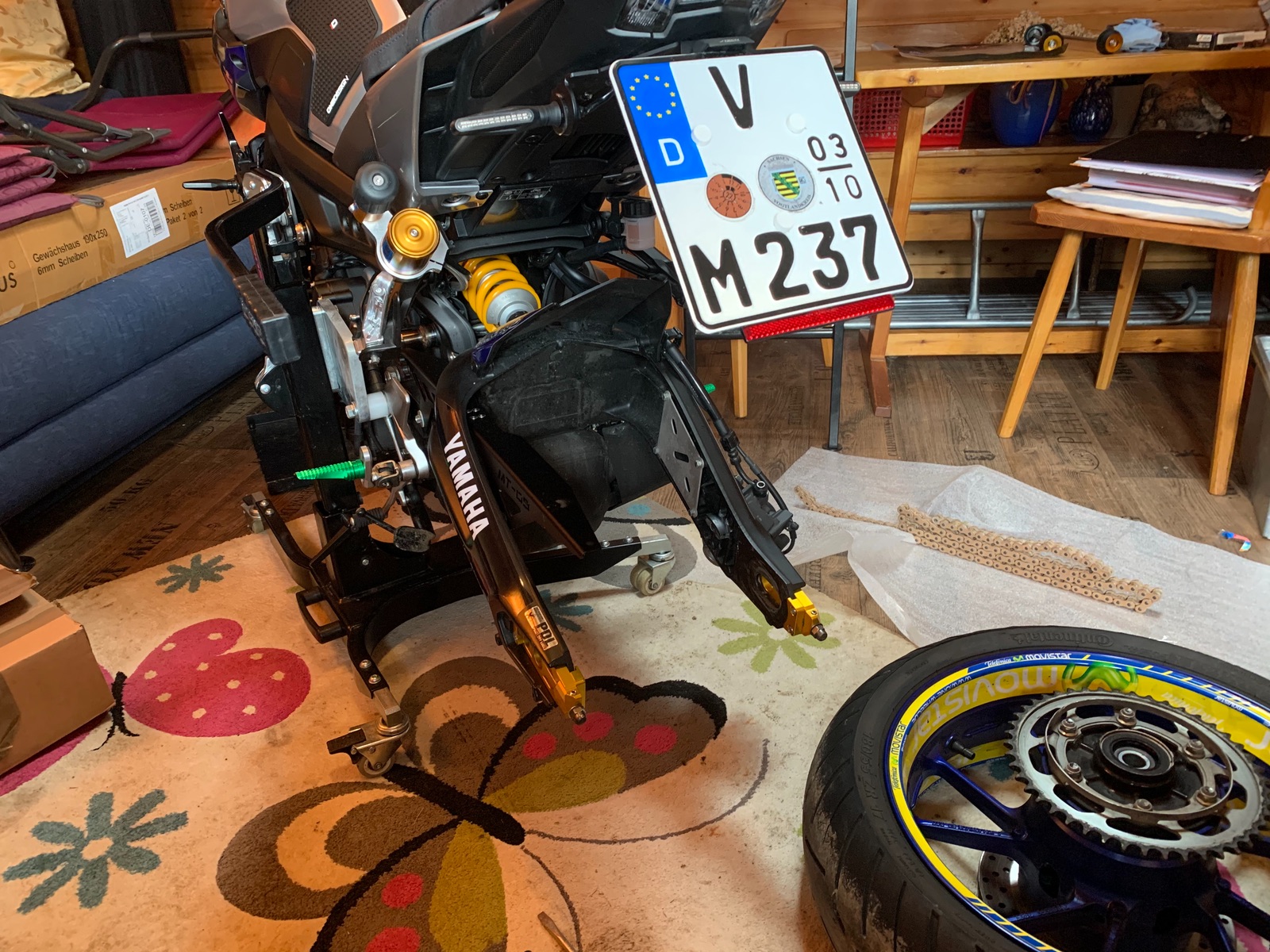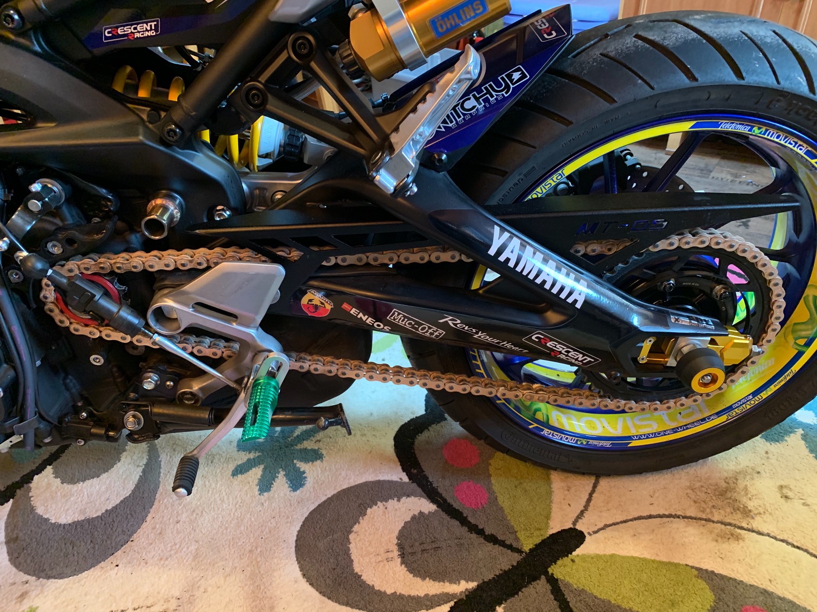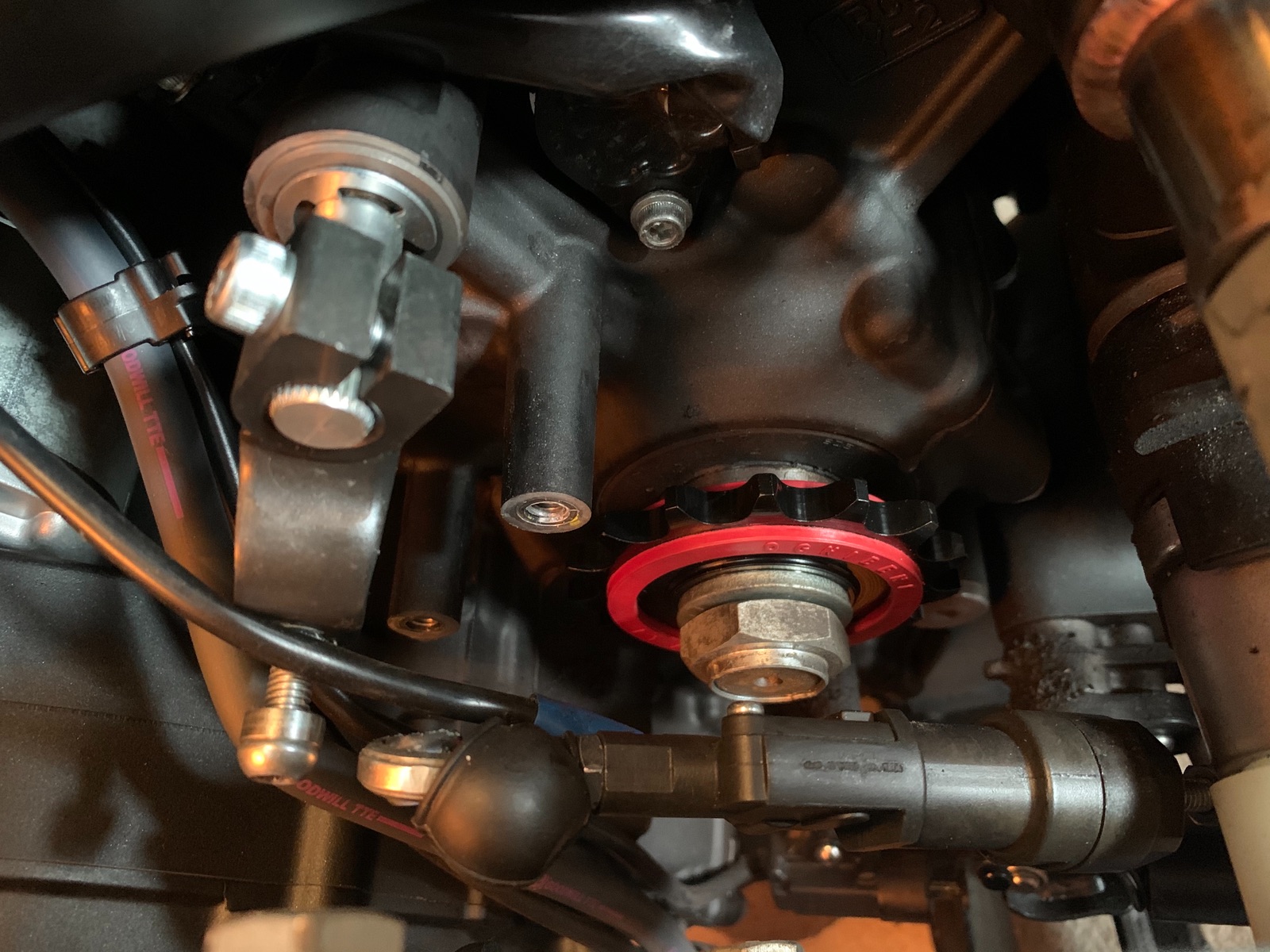 ..... die Muttern sind aber - zumindest optisch - schon ziemlich lang ( muss aber wohl technisch so sein ) ..... aber offensichtlich bleiben die nicht irgendwo hängen ( zb Bereiche Ritzelabdeckung - Kettenschutz - Fussrastenanlage innen ) ..... interessant.