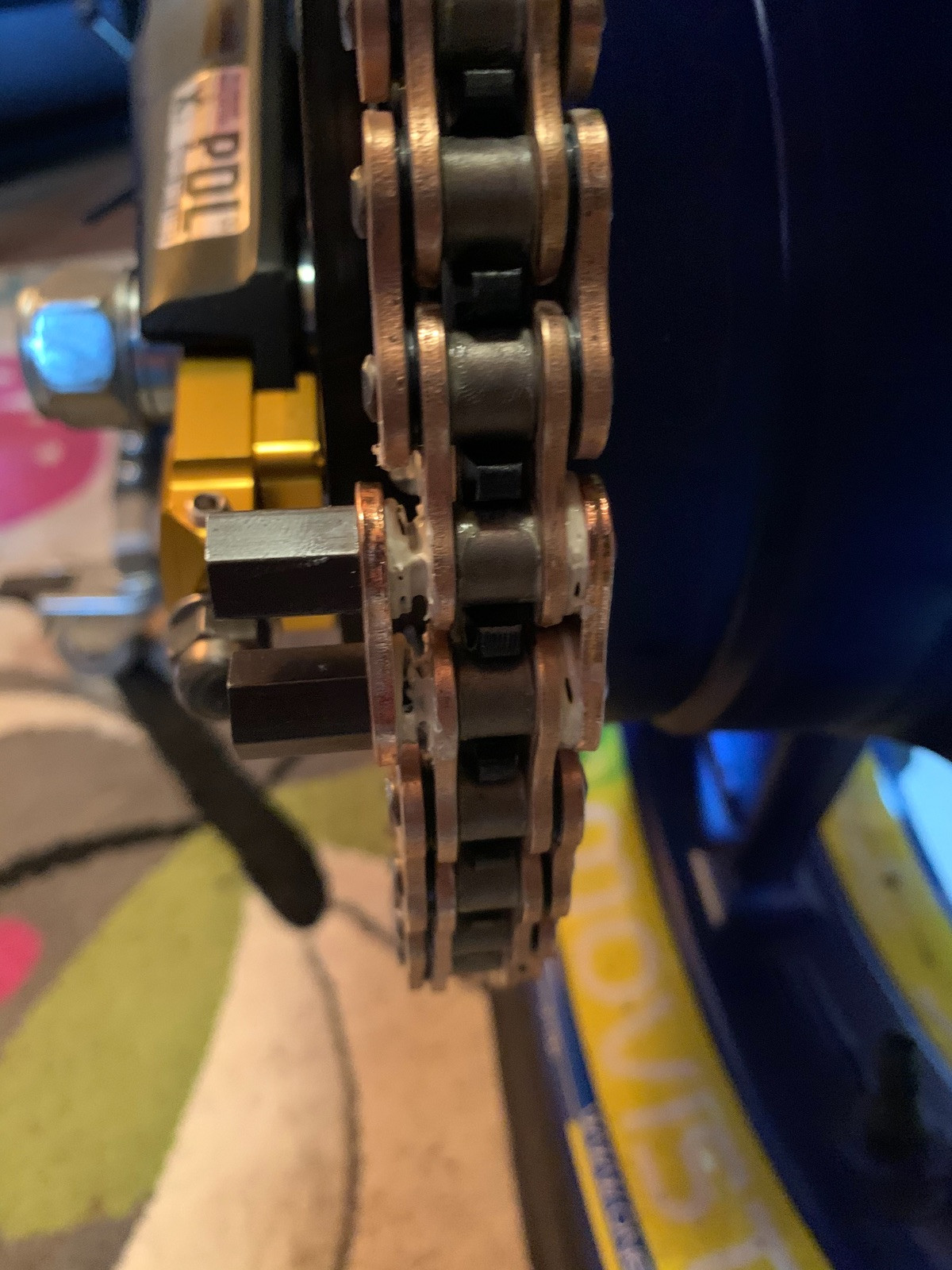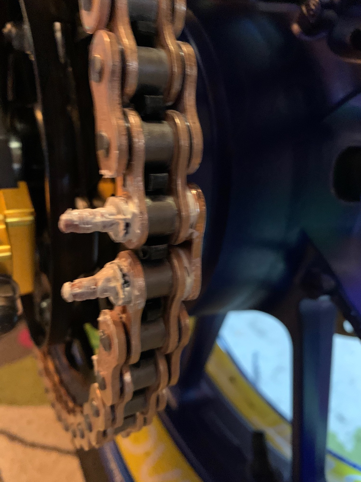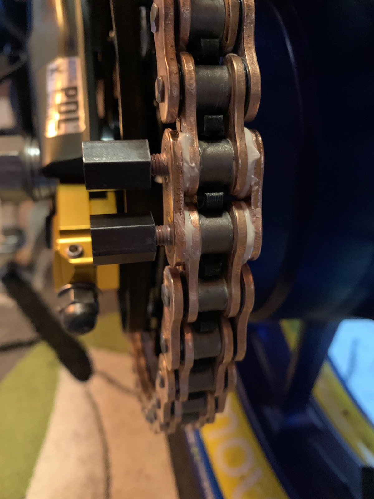 Die Muttern werden zum Schluss durch eine Sollbruchstelle weggebrochen. Durch das verschrauben wird das Kettenschloss vernietet.