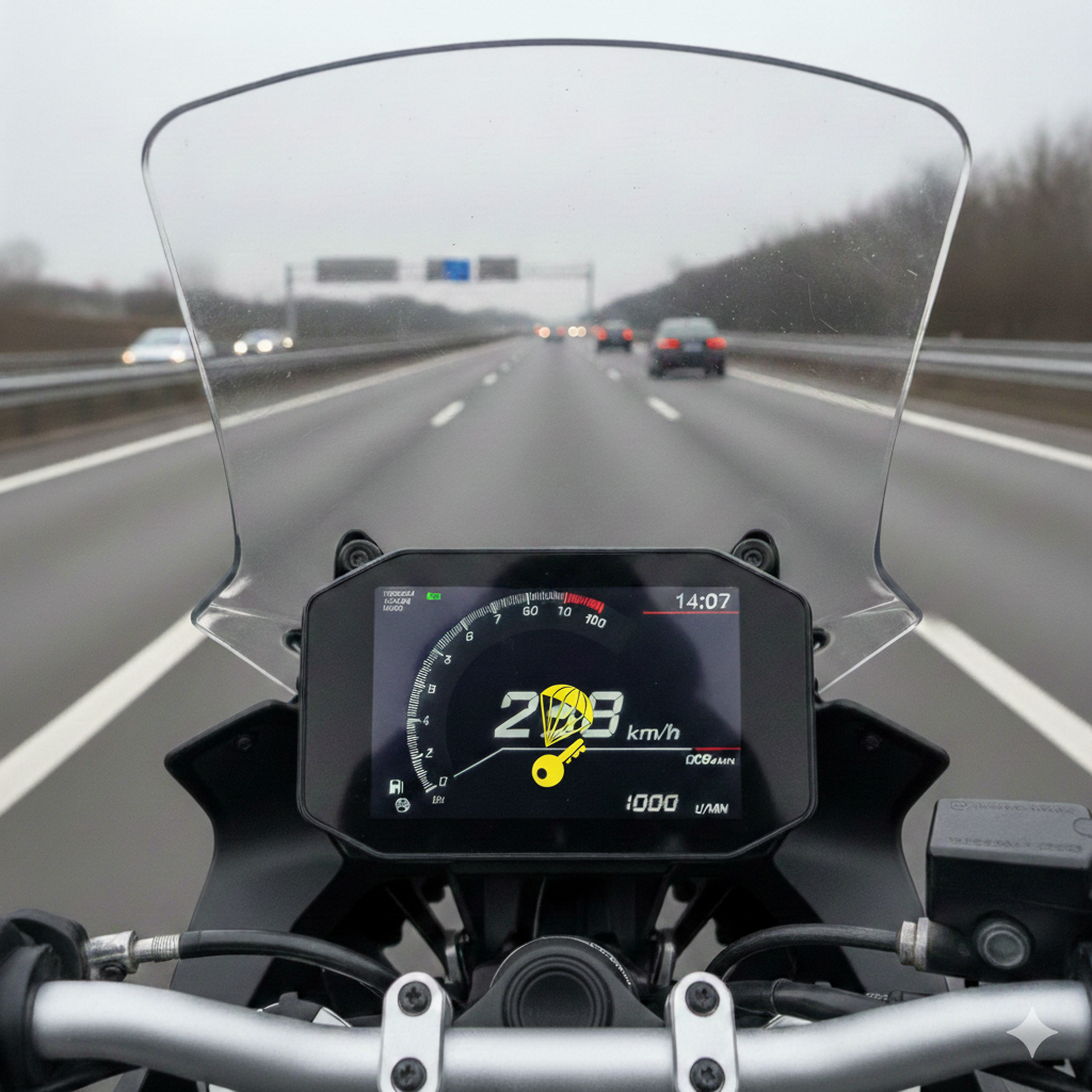 Alles anzeigenWenn du während der Fahrt den Schlüssel verlierst, teilt sein Moped dir nach der Fahrt mit lautem piepen mit, dass dein Schlüssel weg ist.
