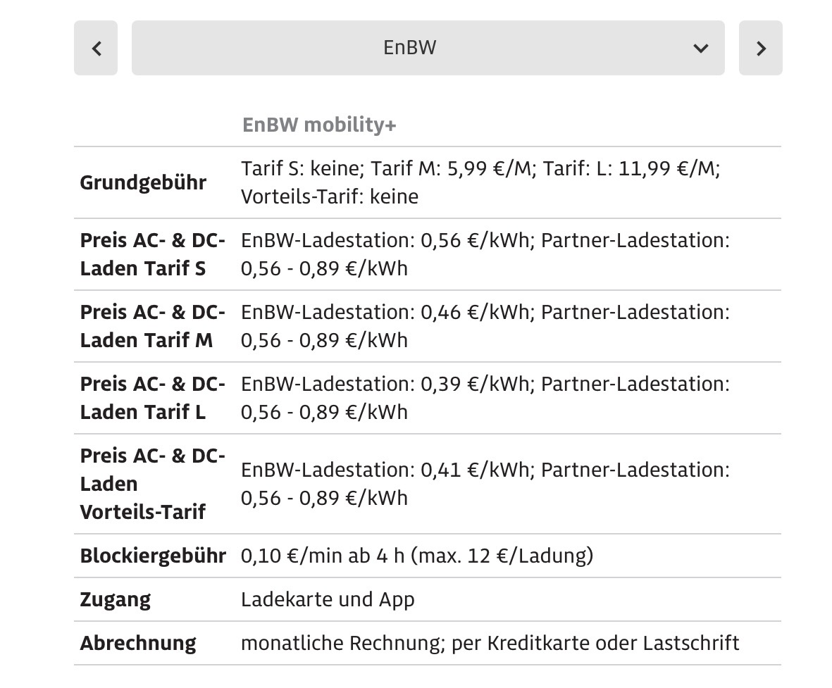 | EnBW mit Karte | 0,56 | | | hakt an einigen Säulen, tlw. 100% Ausfall |