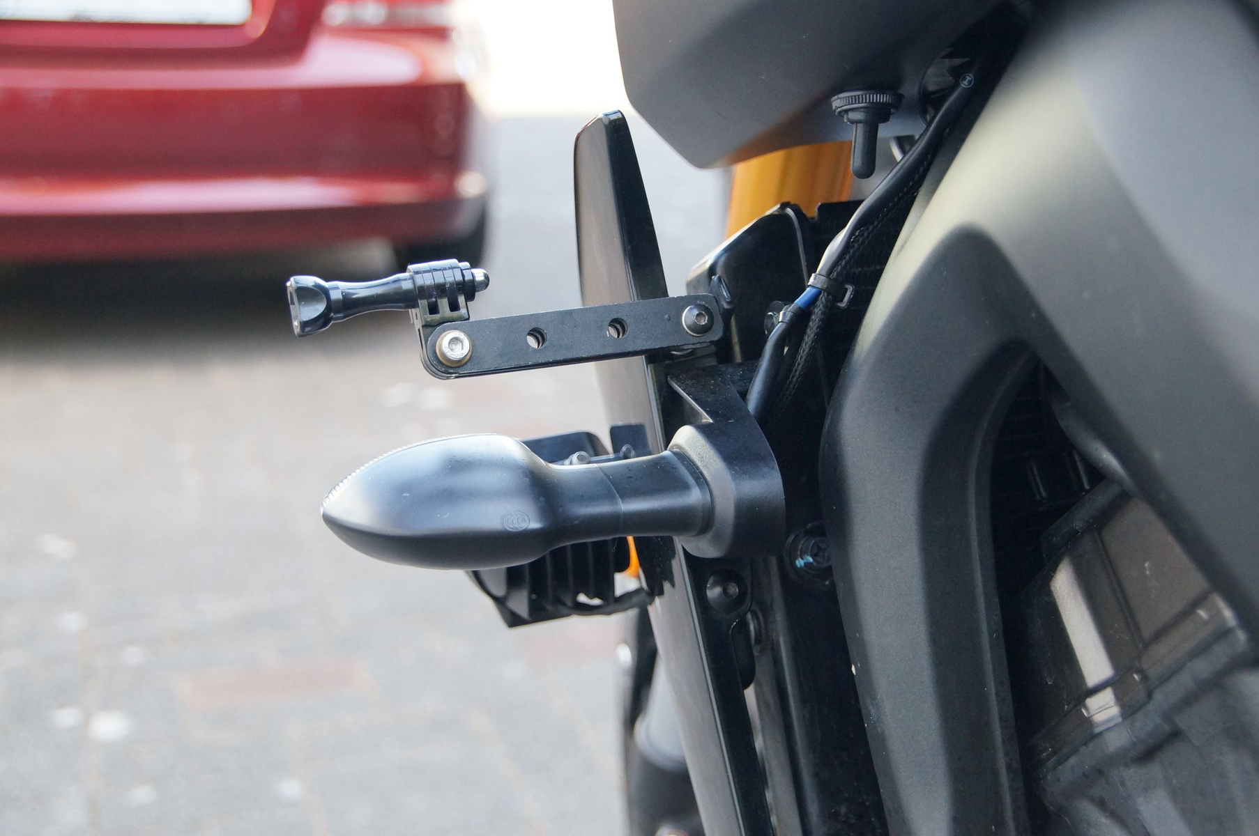 Ich hab dazu lediglich ne vorhandene Schraube gegen was längeres und ne 3 lagige Alu-Verlängerung dran geschraubt. Hält seit 2 Jahren. Die erste hatte ne GoPro-Kunststoffhalterung, die brach i.wann ab.