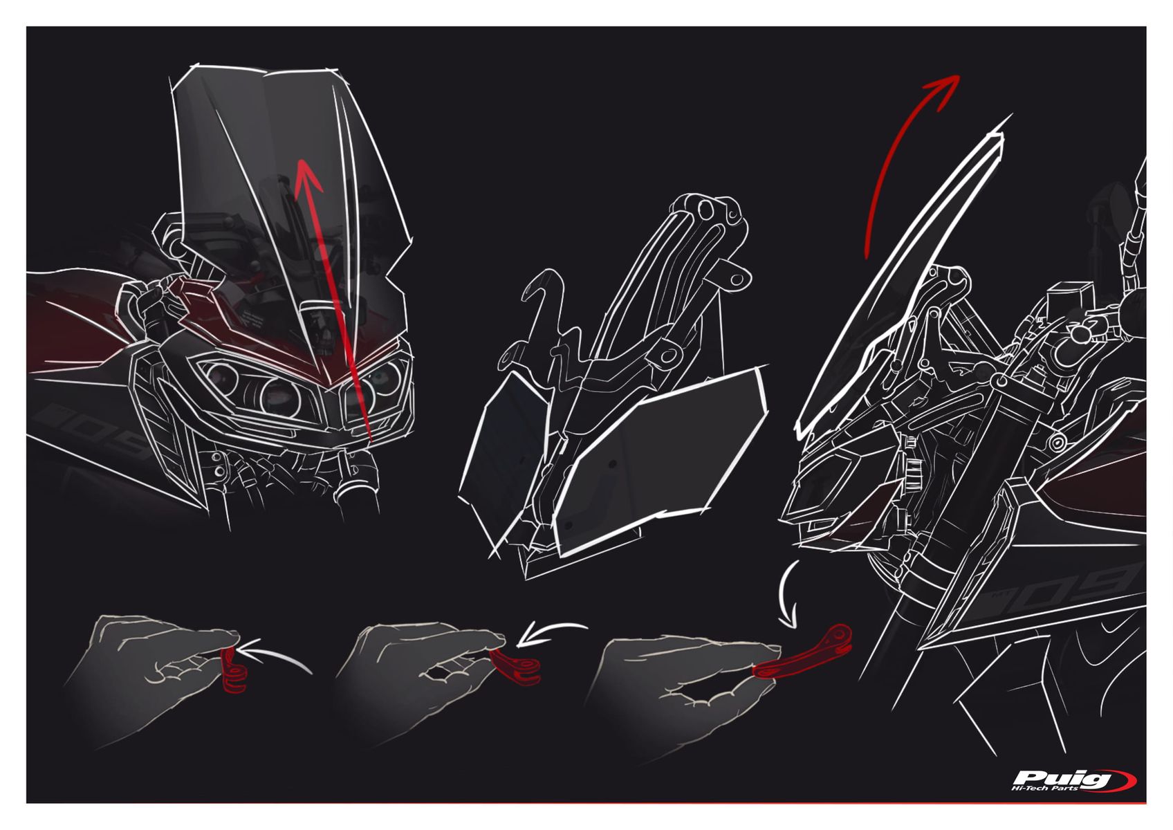 Puig bietet zu der Scheibe genau was man zum Verstellen braucht.