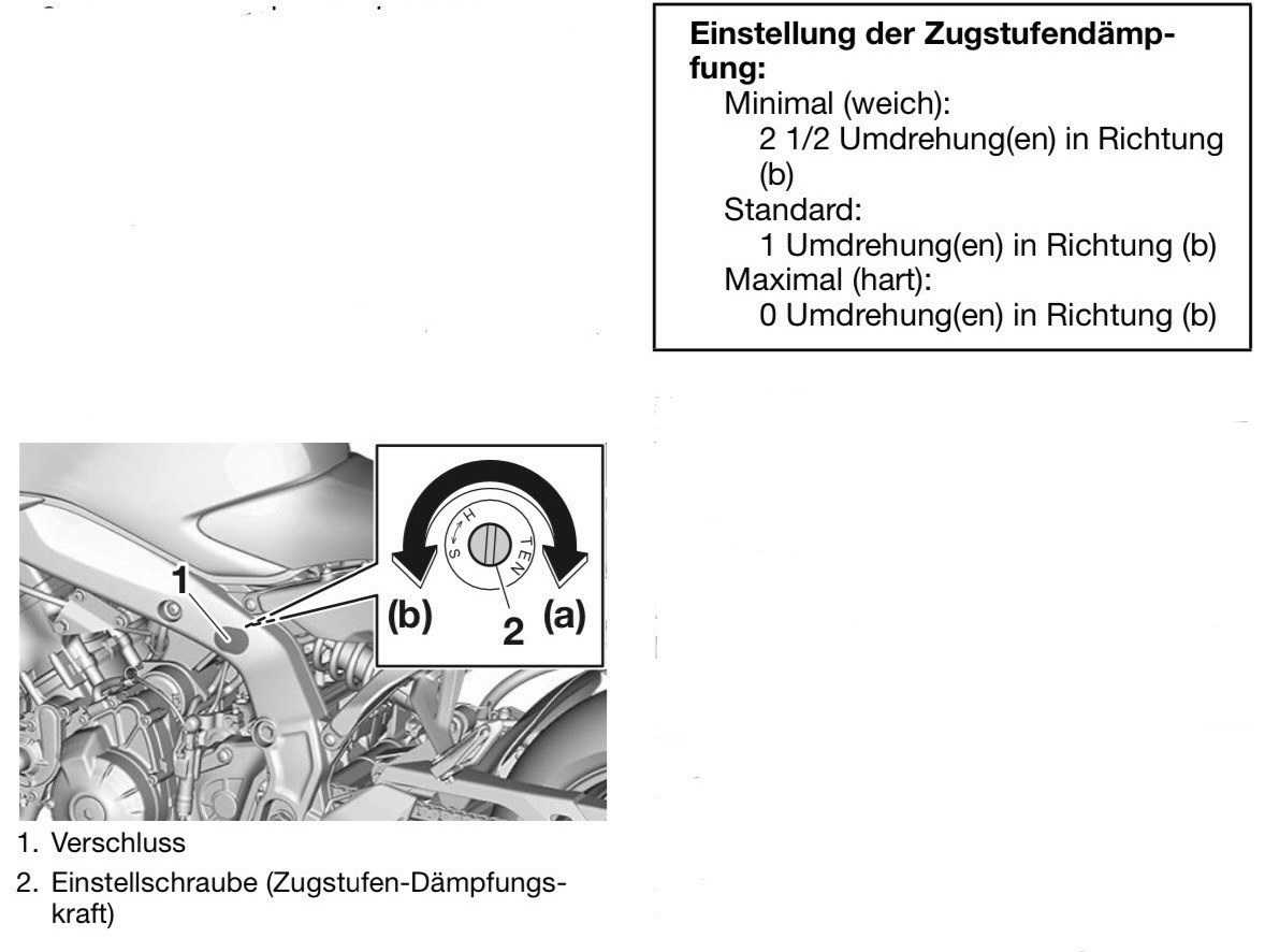 Rechts (Zugstufe) und das Federbein würde ich erstmal auf Standard lassen.