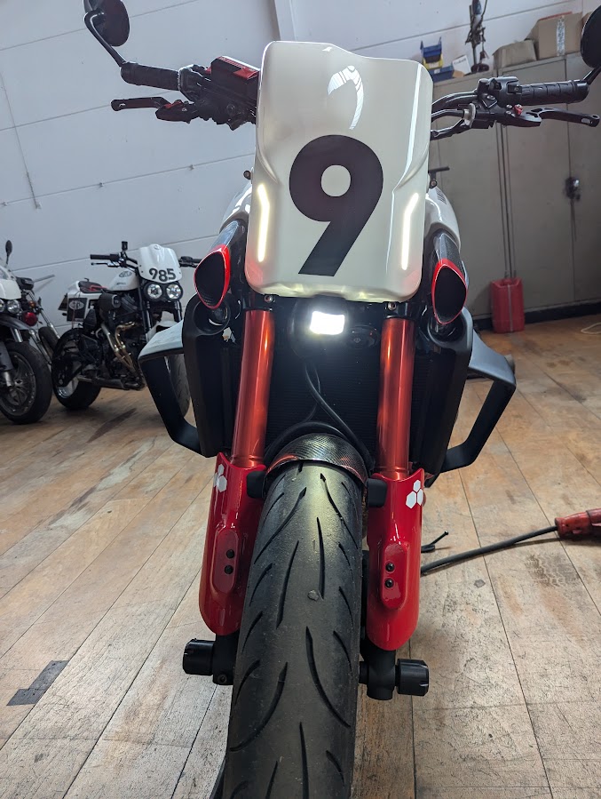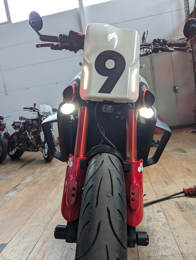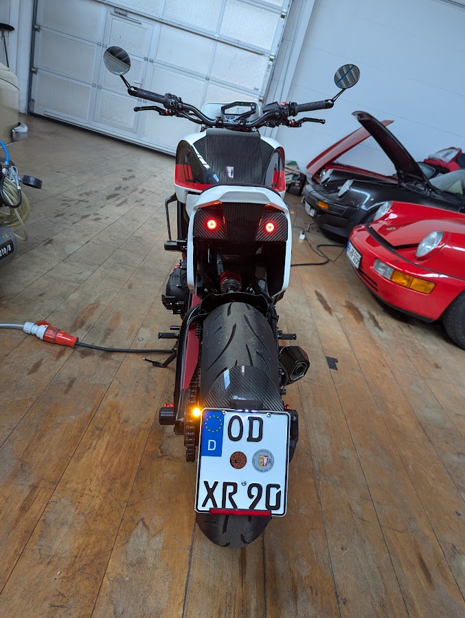 Es ist geschafft, die XR9 wurde abgenickt, alle Umbauten wurden eingetragen. Das mit der Frontbeleuchtung musste nochmal verändert werden, jetzt ist mittig unter der Nummerntafel ein kombinierter Abblend- Fernscheinwerfer. Die beiden Abblendlampen waren zu weit auseinander. Es gibt wohl für alles genaue Regeln