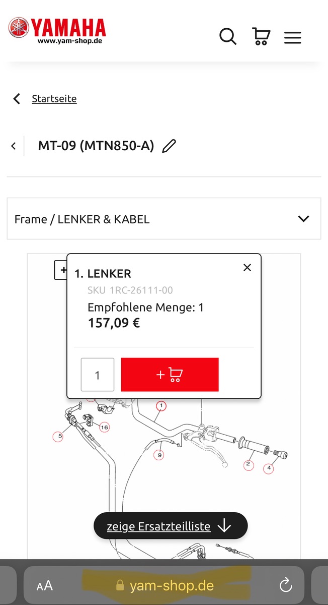 Yamaha Lenker OEM MT09 (RN43)