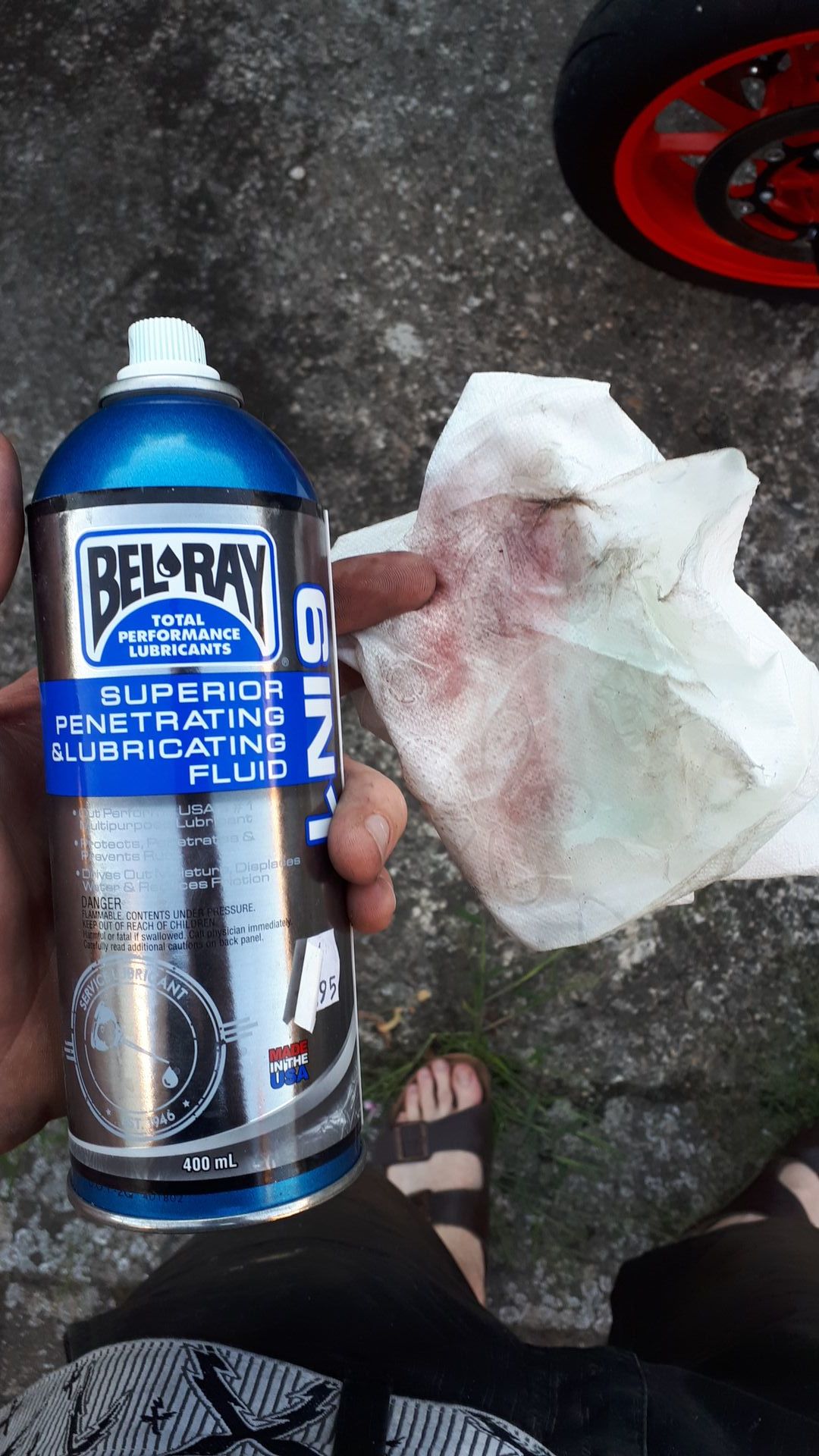 Ich habe einen Kettender und kann das Öl mit einem einfachen Taschentuch abwischen. Bisher hatte ich noch nie Farbe an meinem Tuch. Auch nicht, als ich anfangs mit Bresemreiniger ran gegangen bin.