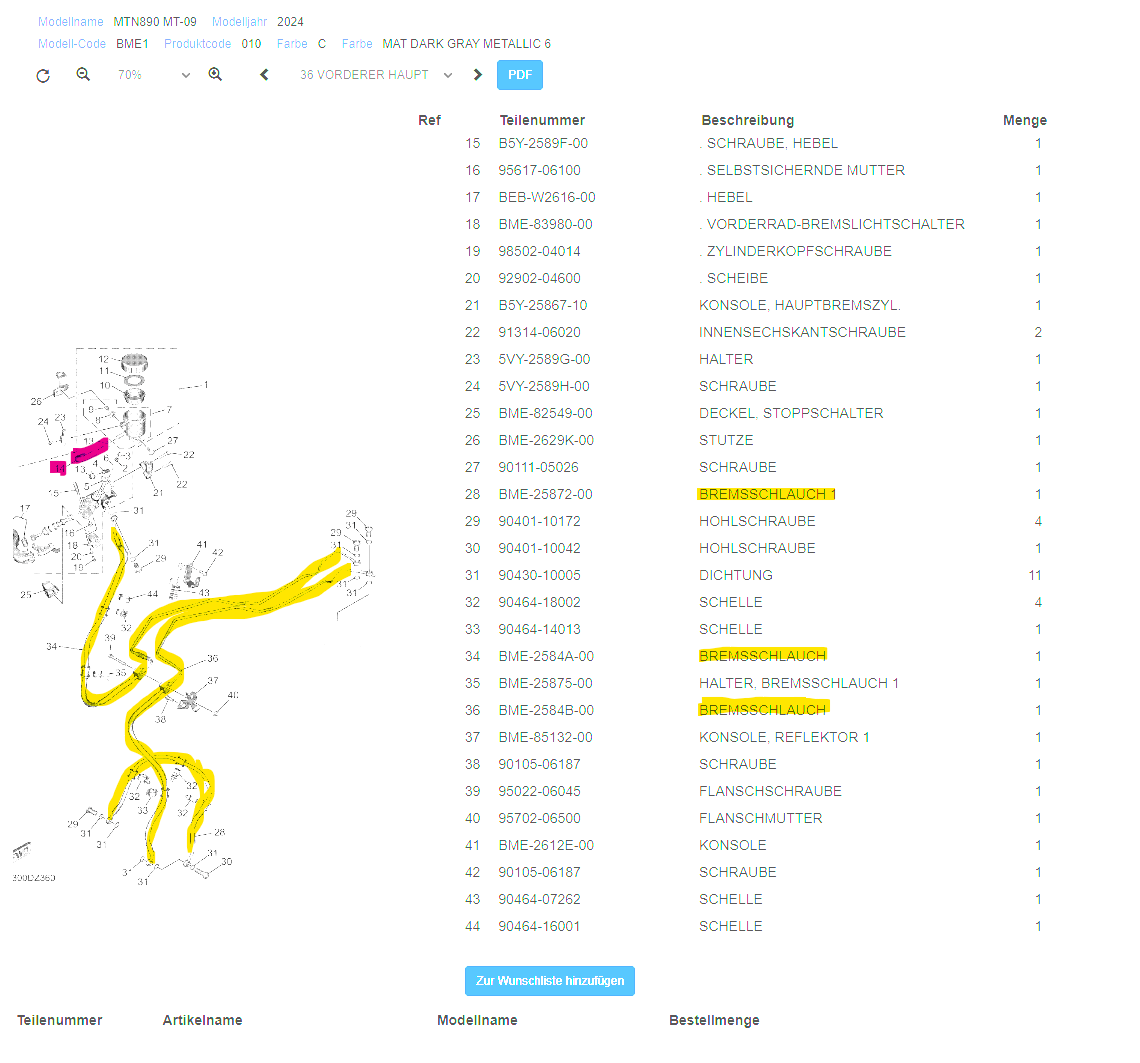Um in Erfahrung zu bringen, wie viele ich dann davon brauche, habe ich mir den Ersatzteilekatalog von Yamaha angesehen.