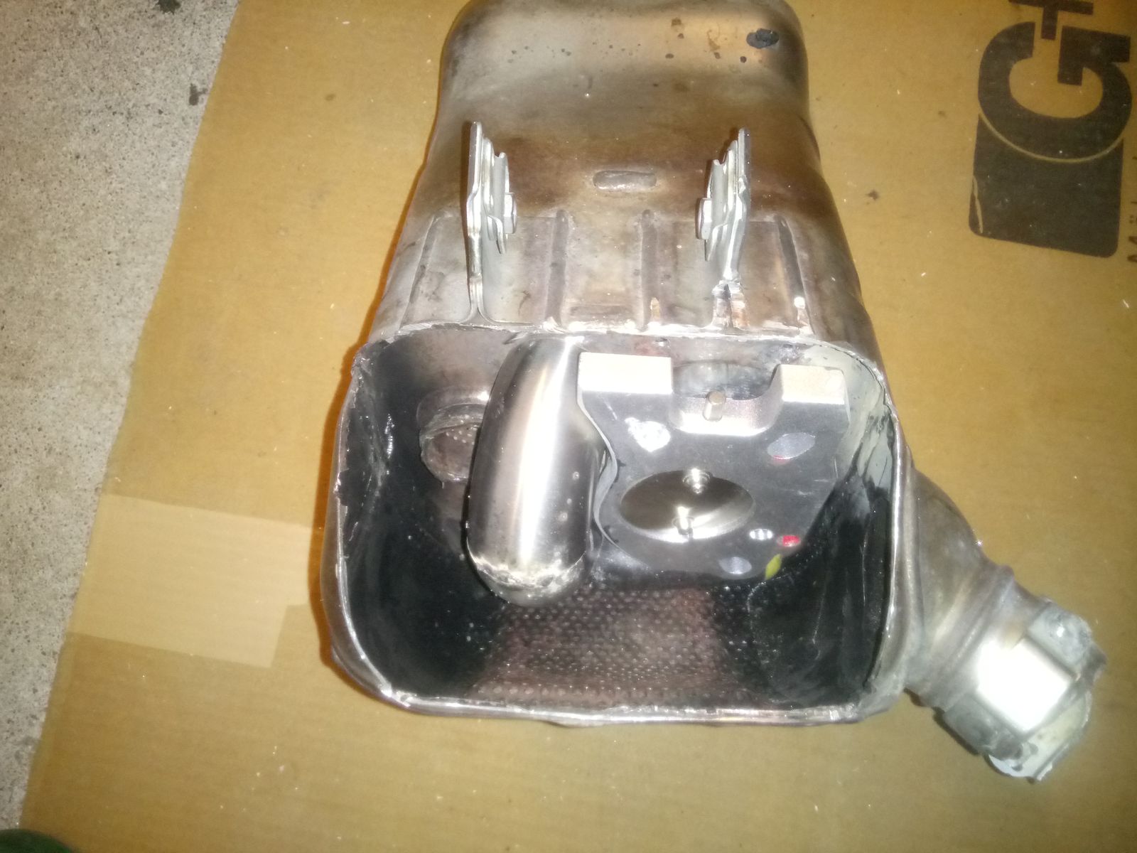 So in etwa wird der Auspuff von innen aussehen. Die Klappe mit 51 mm Durchmesser habe ich angepasst, einen Abstandhalter von ca. 20 mm (Rohr) dahinter. Das Rohr links verbindet die Kammer mit dem Kat mit der Kammer ganz vorne. So strömen die Abgase bei geschlossener Klappe fast komplett den weiten Weg.
