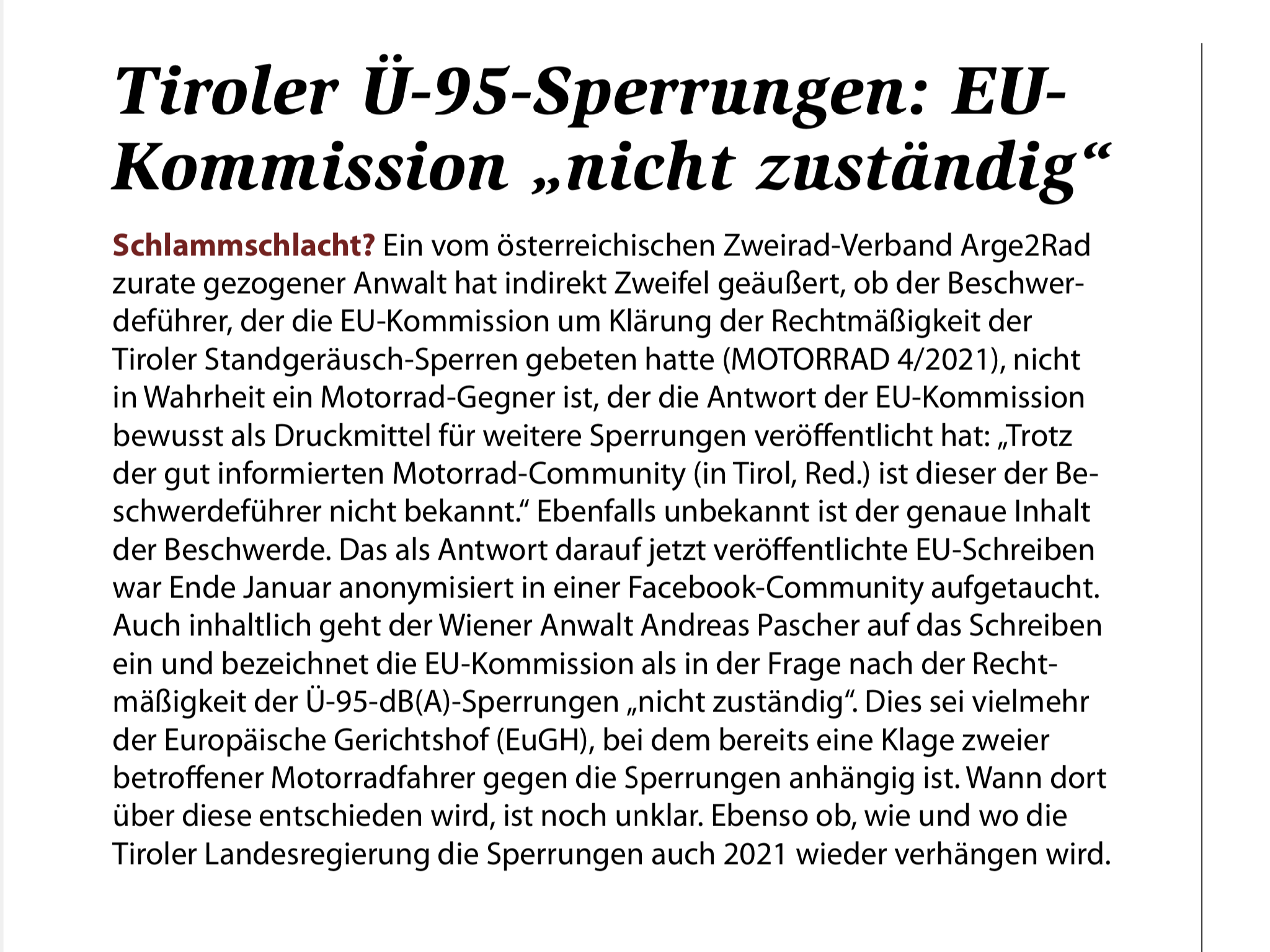 Alles anzeigenDa wäre ich jetzt nicht mehr so sicher. In der aktuellen Motorrad gibt es einen kleinen Artikel, der mutmassen lässt, dass diese EU-Kommission-Stellungnahme gefaked wurde - ggf. von einem Motorradgegner (!).