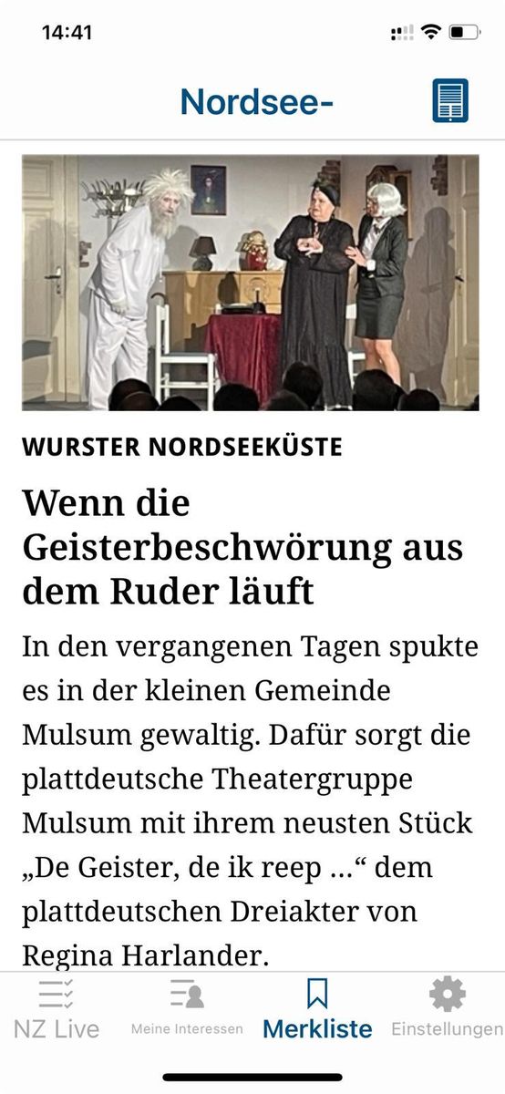 Nach Geisterbeschwörung läuft alles aus dem RuderIn den vergangenen Tagen spukte es in der kleinen Gemeinde Mulsum gewaltig. Dafür sorgt die plattdeutsche Theatergruppe Mulsum mit ihrem neusten Stück „De…epaper.nordsee-zeitung.deGruß Sigi
