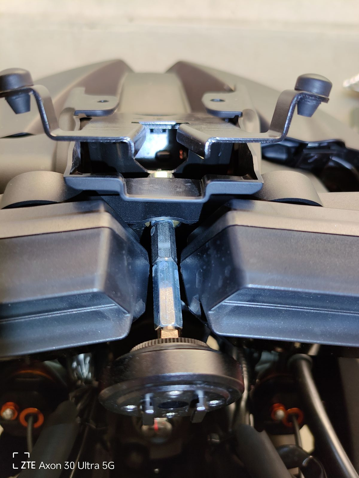 Jetzt brauchte man theorethisch nur eine 100 mm Schraube, um dasSP CONNECT Anti Vibrations Modul zu befestigen.Allerdings fand ich keine solche Schraube und -noch wichtiger- hat das AV-Modul nur eine 5mm Bohrung