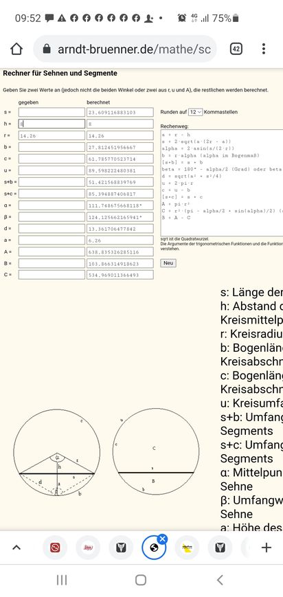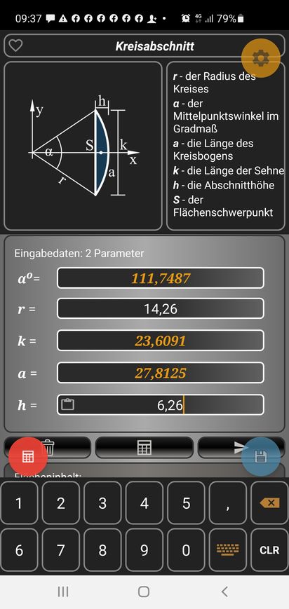 Dein Tipp hat mich vor Allem auch drauf gebracht, daß ich kürzlich mal eine App fürs Handy runtergeladen hatte, die auch verschiedene geometrische Sachen berechnen kann.