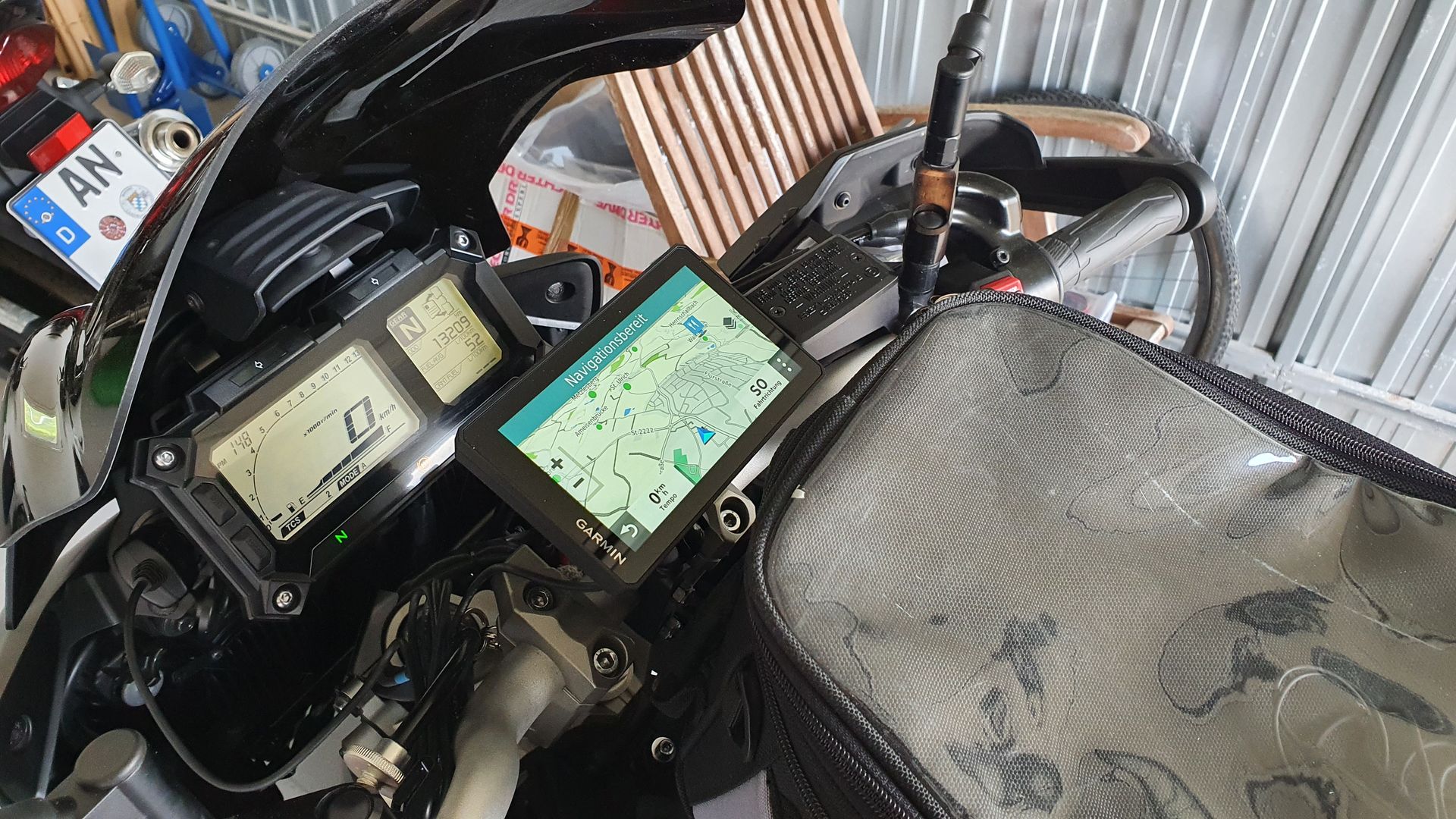 Problem: Der Tankrucksack verdeckt mir die Sicht auf den unteren Rand des Navidisplays. Muß mich ständig nach vorne beugen und nach unten schauen, um alles zu sehen.