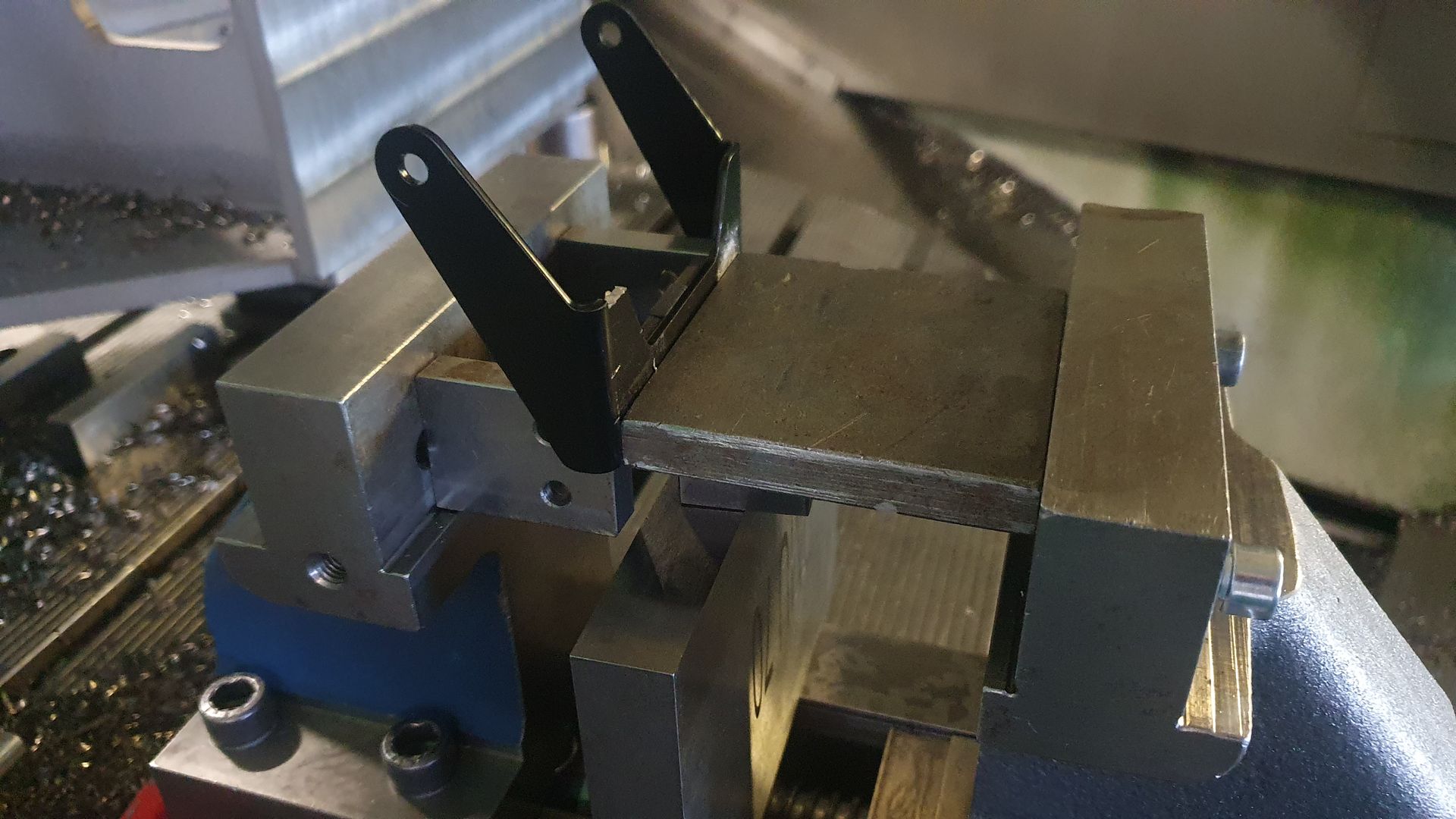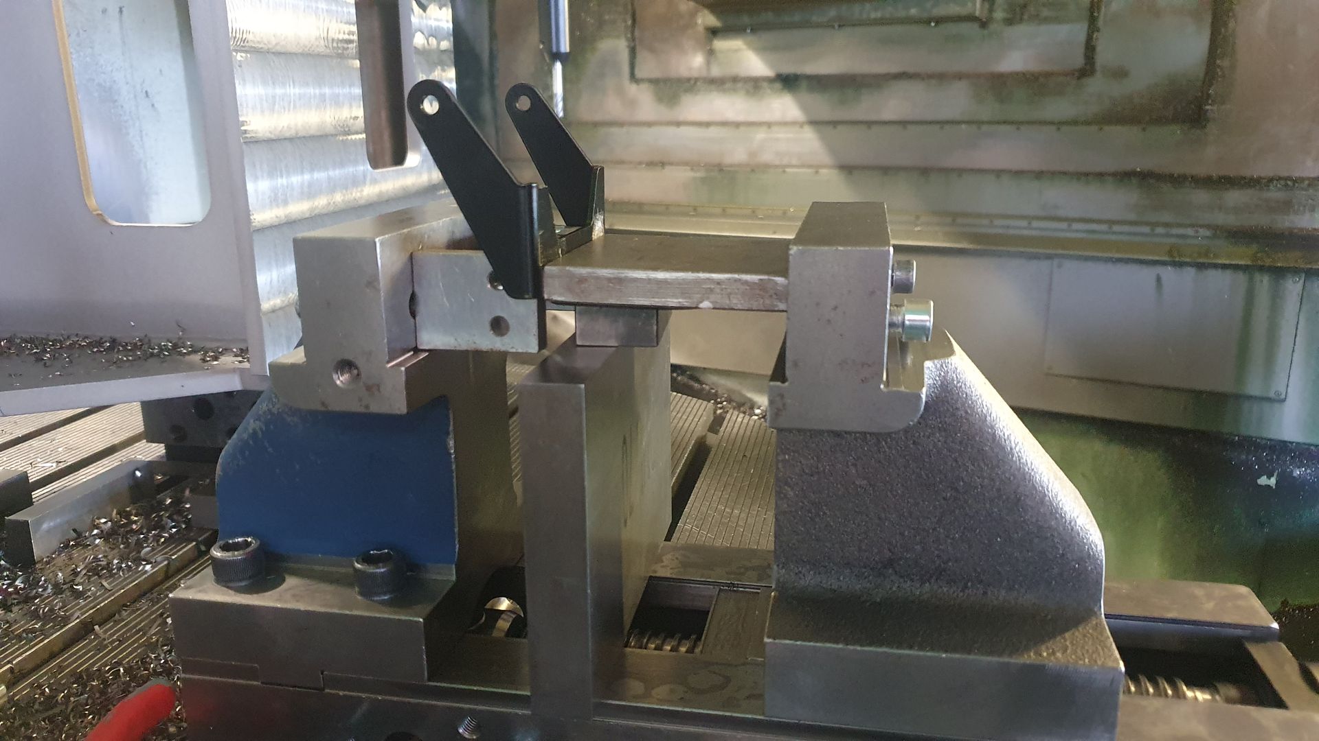 Also pratze ich es hin, klemme noch etwas dazwischen, damit die Seiten bestmögliche Stabilität beim Fräsen haben, dann noch schnell programmiert und los geht's.