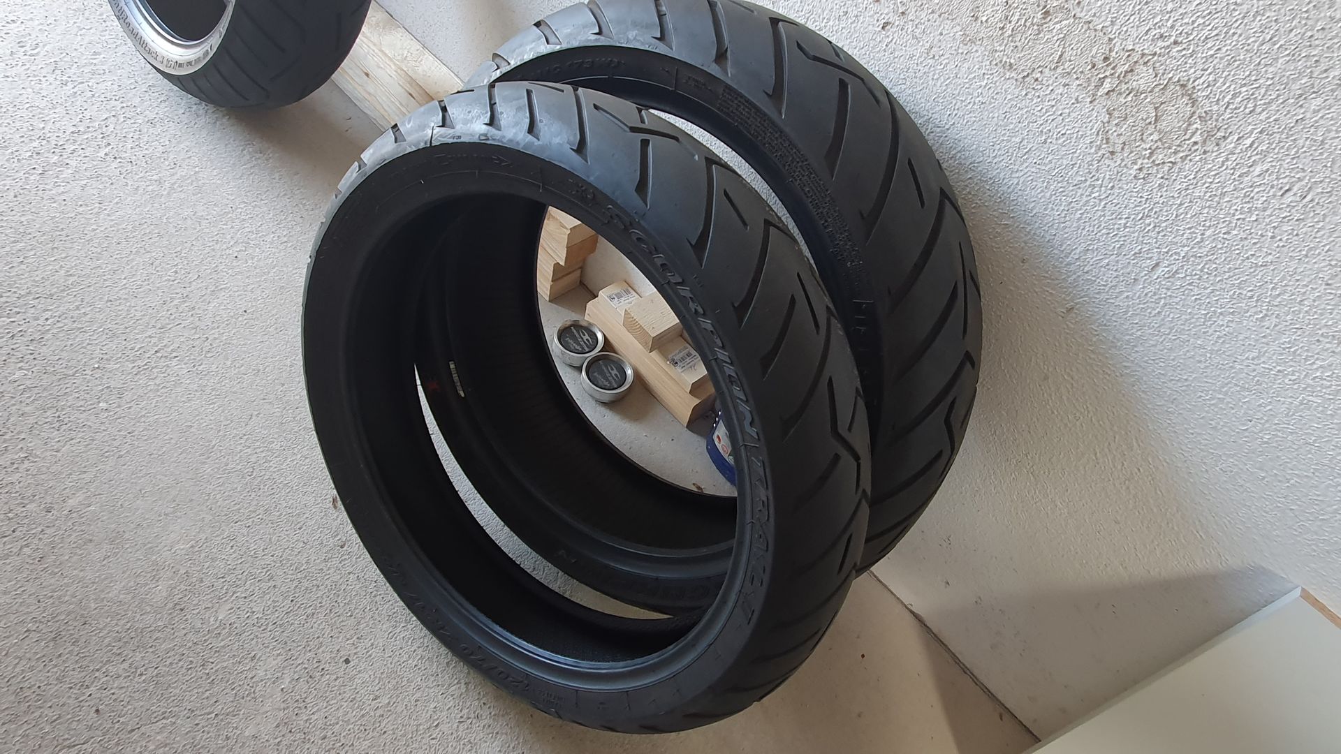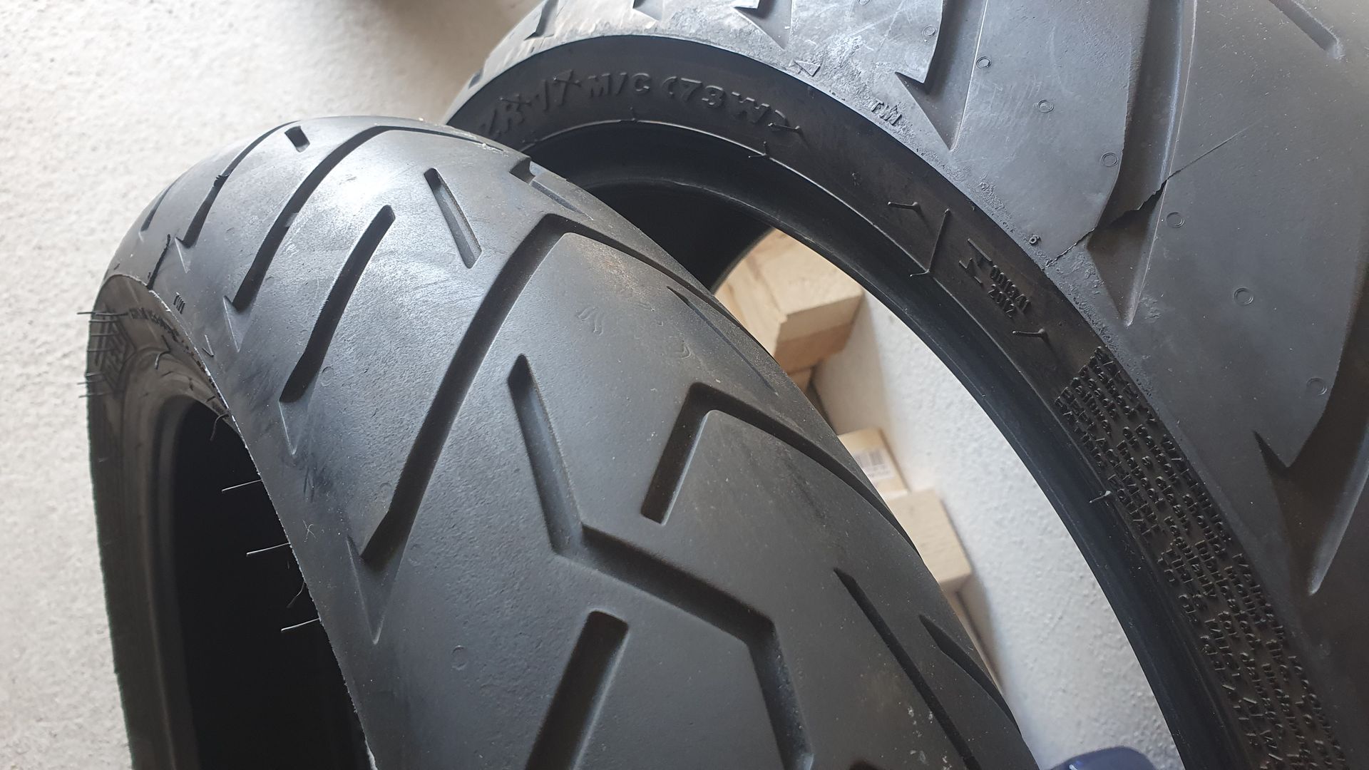 Also mittlerweile hat sich zu dem einsamen Pirelli Scorpion Trail 2 Vorderreifen in meiner Garage auch noch ein dazugehöriger Hinterreifen gesellt, damit die arme Sau nicht so alleine ist.