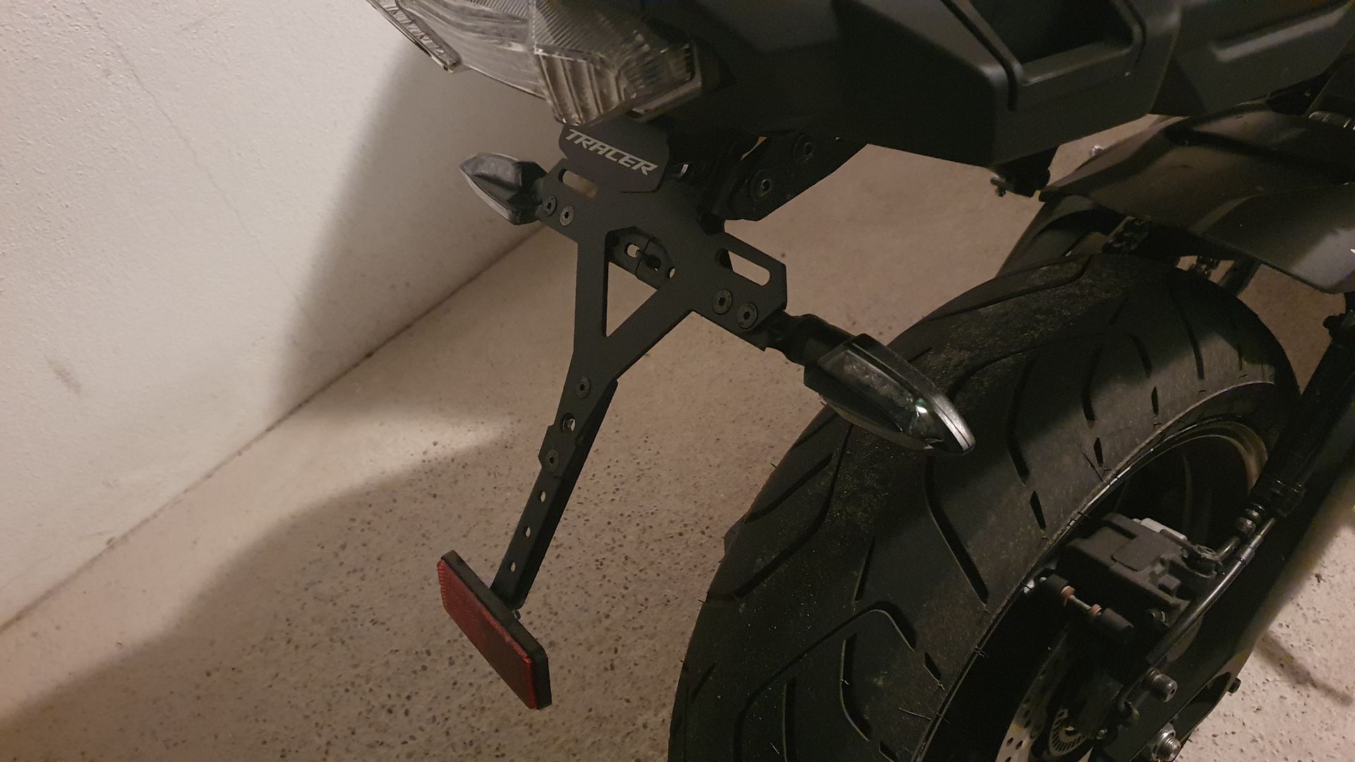 Hmm......genau DAS will ich ja nicht, einen langen Steg und einen Kennzeichenhalter, der einen Meter nach hinten übers Heck herausragt.