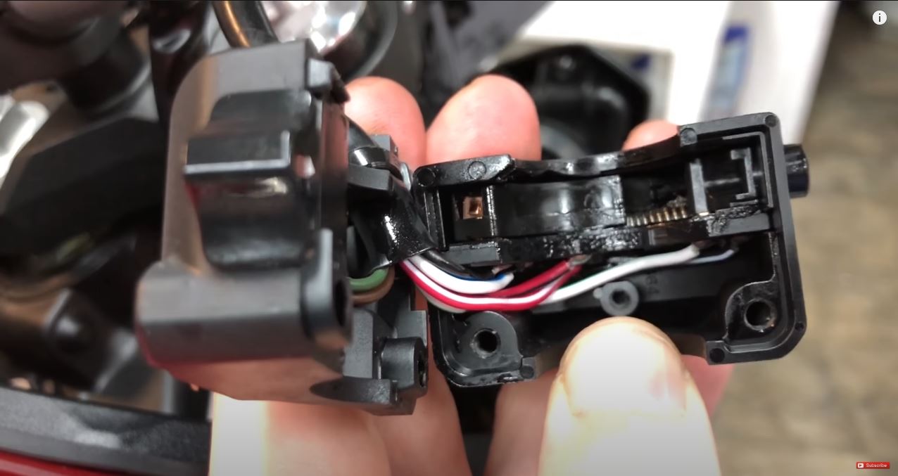 Nach dem Lenkeraus- und einbau ist mit die Feder abhanden gekommen, die den roten Start-Schalter wieder zurück drückt.