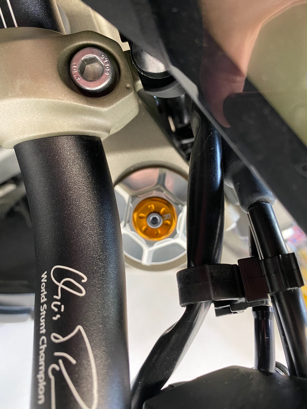 anbei Bilder von den Gabelverstellern und noch eine andere Perspektive vom Federbein.