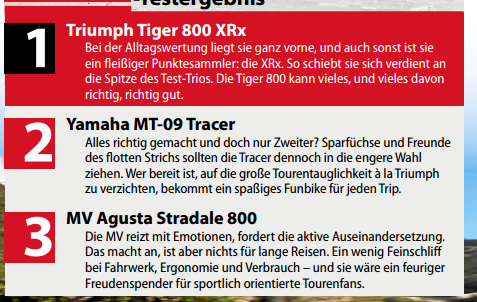 Motorrad 5/15 Toptest Tracer Werner 5. März 2015 Tracer ist leider nur zweiter aber war sehr knapp http://www.motorradonline.de/a…est/646158/paidattachment
